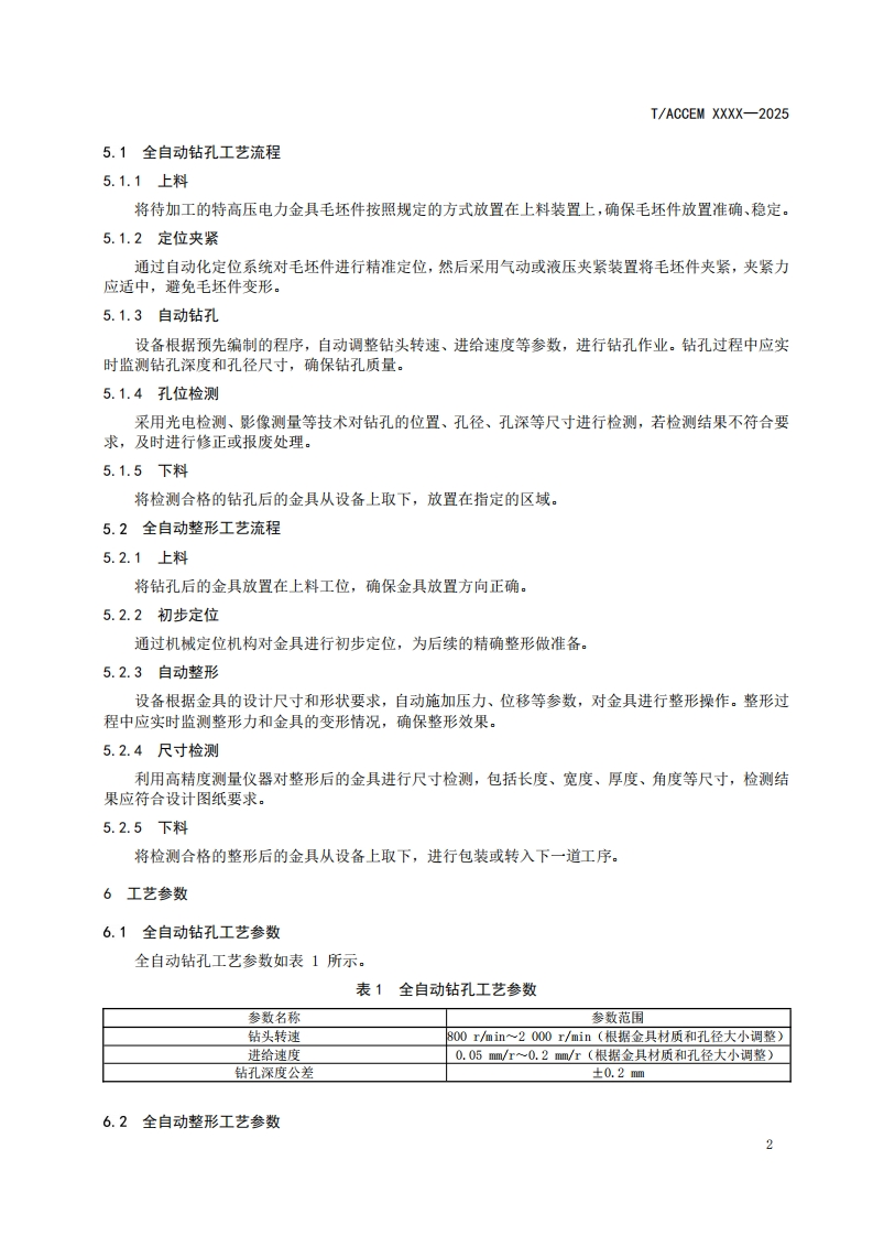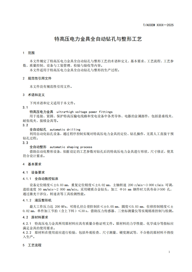 特高压电力金具全自动钻孔与整形工艺Automaticdrillingandshapingprocessofultra-highvoltagepowerfittings348072@abc15小时前发布关注私信0.23MB7页035特高压电力金具全自动钻孔与整形工艺Automaticdrillingandshapingprocessofultra-highvoltagepowerfittings此内容为付费资源,请付费后查看¥19¥23黄金会员免费钻石会员免费立即购买您当前未登录!建议登陆后购买,可保存购买订单付费资源 第1页 / 共7页 第2页 / 共7页 第3页 / 共7页 第4页 / 共7页 第5页 / 共7页 试读已结束,还剩2页,您可下载完整版后进行离线阅读 THE END标准规范 文本预览 ICSccsTACCEM团体标准T/ACCEM XXXX-2025特高压电力金具全自动钻孔与整形工艺Automatic drilling and shaping process of ultra-high voltage power fittings(征求意见稿)在提交反债意见时,请将您知道的相关专利连同支持性文件一并附上。XXXX-Xx-XX发布XXXX-Xx-XX实施中国商业企业管理协会发布 查看更多 收起部分 喜欢就支持一下吧收藏