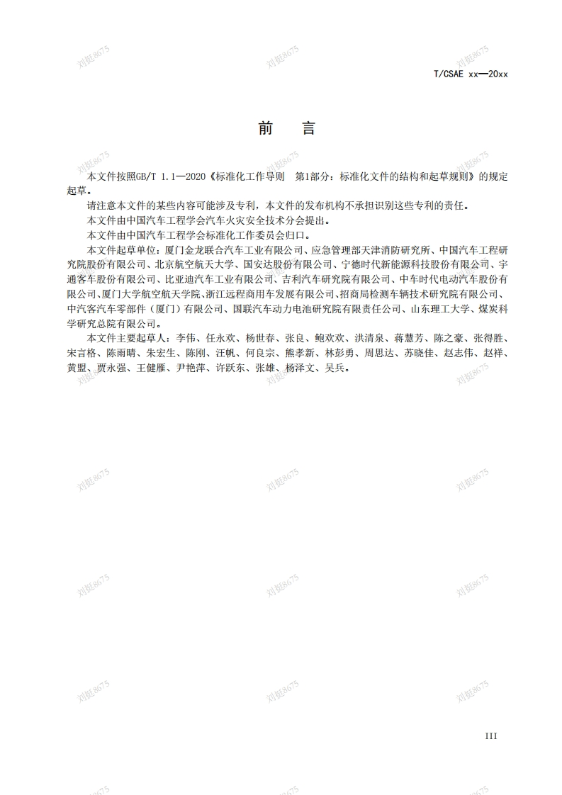 ICS43.120CCS T 47刘挺刘挺8675刘挺8675团体标准、刘挺8675刘挺8675T/CSAE xx-20xx挺8675电动客车用动力蓄电池安全风险车端处置要求Requirements for on-board safety risk response of traction battery刘挺8675systems in electric buses刘挺刘挺8675(征求意见稿)在提交反馈意见时,请将您知道的相关专利连同支持性文件一并附上心6刘挺8675刘挺8675刘挺867520xx-xx-xx发布20xx-xx-xx实施挺86刘挺86刘挺86中国汽车工程学会发布75
