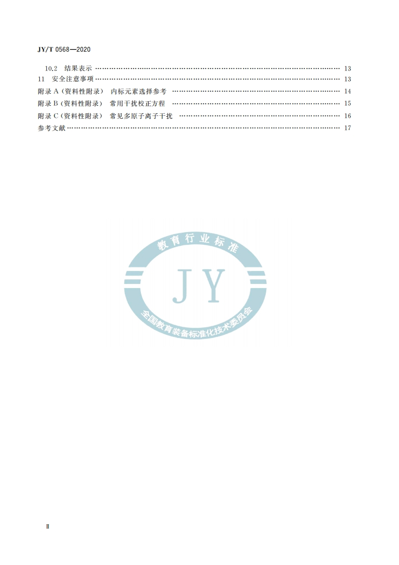 电感耦合等离子体质谱分析方法通则Generalrulesforinductivelycoupledplasma-massspectrometry号348072@abc10小时前发布关注私信1.36MB23页048电感耦合等离子体质谱分析方法通则Generalrulesforinductivelycoupledplasma-massspectrometry号此内容为付费资源,请付费后查看¥19¥23黄金会员免费钻石会员免费立即购买您当前未登录!建议登陆后购买,可保存购买订单付费资源 第1页 / 共23页 第2页 / 共23页 第3页 / 共23页 第4页 / 共23页 第5页 / 共23页 试读已结束,还剩18页,您可下载完整版后进行离线阅读 THE END标准规范 文本预览 1CS03.180Y51JY中华人民共和国教育行业标准JY/T0568-2020电感耦合等离子体质谱分析方法通则General rules for inductively coupled plasma-mass spectrometryJY月全国教育装备标准化技术委员2020-09-29发布2020-12-01实施中华人民共和国教育部发布 查看更多 收起部分 喜欢就支持一下吧收藏