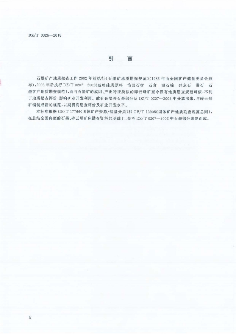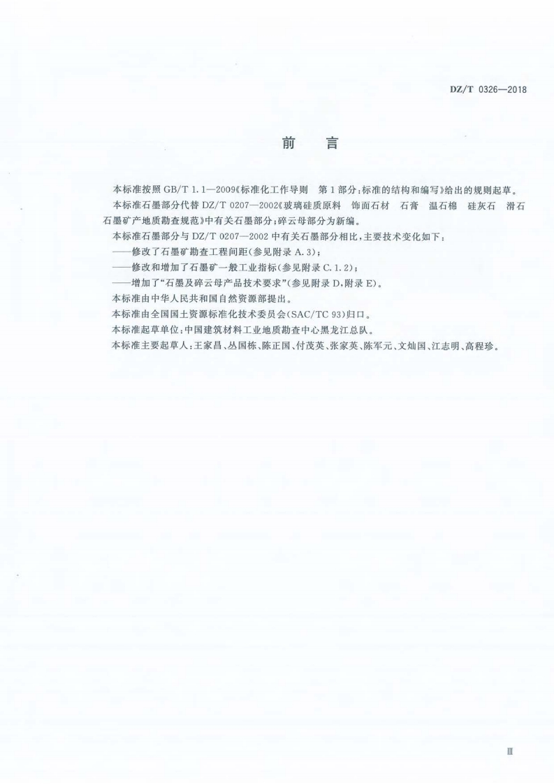 石墨碎云母矿产地质勘查规范Specificationforgraphiteandbrokenmicamineralexploration348072@abc10小时前发布关注私信4.59MB34页042石墨碎云母矿产地质勘查规范Specificationforgraphiteandbrokenmicamineralexploration此内容为付费资源,请付费后查看¥19¥23黄金会员免费钻石会员免费立即购买您当前未登录!建议登陆后购买,可保存购买订单付费资源 第1页 / 共34页 第2页 / 共34页 第3页 / 共34页 第4页 / 共34页 第5页 / 共34页 试读已结束,还剩29页,您可下载完整版后进行离线阅读 THE END标准规范 文本预览 1CS73.020:73.080D130z中华人民共和国地质矿产行业标准DZ/T0326-2018石墨、碎云母矿产地质勘查规范Specification for graphite and broken mica mineral exploration2018-07-05发布2018-11-01实施中华人民共和国自然资源部发布 查看更多 收起部分 喜欢就支持一下吧收藏