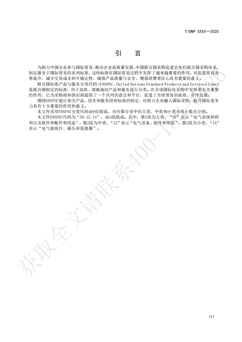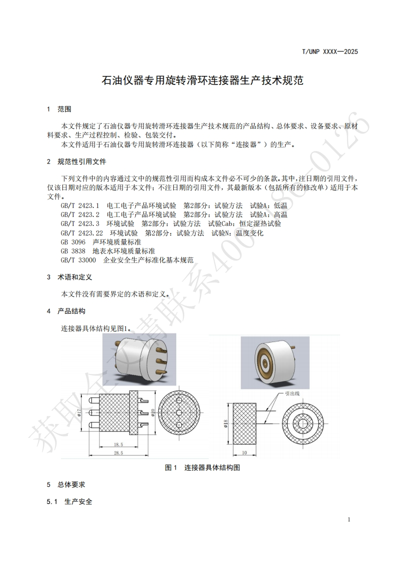 ICS29.120.30UNSPSC 39.12.14CCSL23UNP团体标准T/UNP XXXX-2025石油仪器专用旋转滑环连接器生产技术规范Technical specification for production of specialized rotary slip ring connectors forpetroleum instruments获取全文请(征求意见稿)2025-Xx-XX发布2025-Xx-XX实施中国联合国采购促进会发布