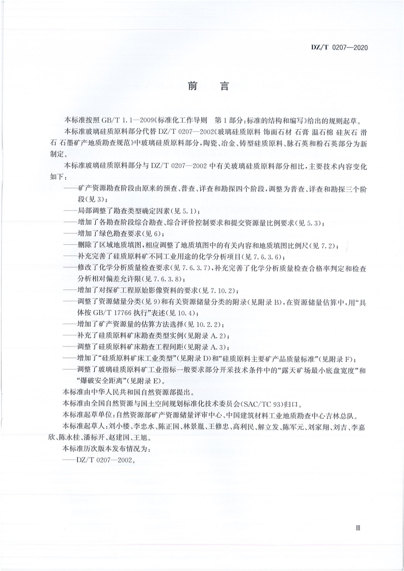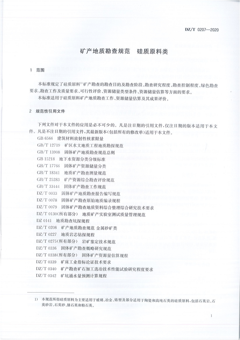 矿产地质勘查规范硅质原料类Specificationsforsiliconmaterialexploration348072@abc7小时前发布关注私信17.91MB40页041矿产地质勘查规范硅质原料类Specificationsforsiliconmaterialexploration此内容为付费资源,请付费后查看¥19¥23黄金会员免费钻石会员免费立即购买您当前未登录!建议登陆后购买,可保存购买订单付费资源 第1页 / 共40页 第2页 / 共40页 第3页 / 共40页 第4页 / 共40页 第5页 / 共40页 试读已结束,还剩35页,您可下载完整版后进行离线阅读 THE END标准规范 文本预览 1CS73.020:73.080D130z中华人民共和国地质矿产行业标准DZ/T0207-2020代替DZ/T0207一2002玻璃硅质原料部分矿产地质勘查规范硅质原料类Specifications for silicon material exploration2020-04-30发布2020-04-30实施中华人民共和国自然资源部发布 查看更多 收起部分 喜欢就支持一下吧收藏