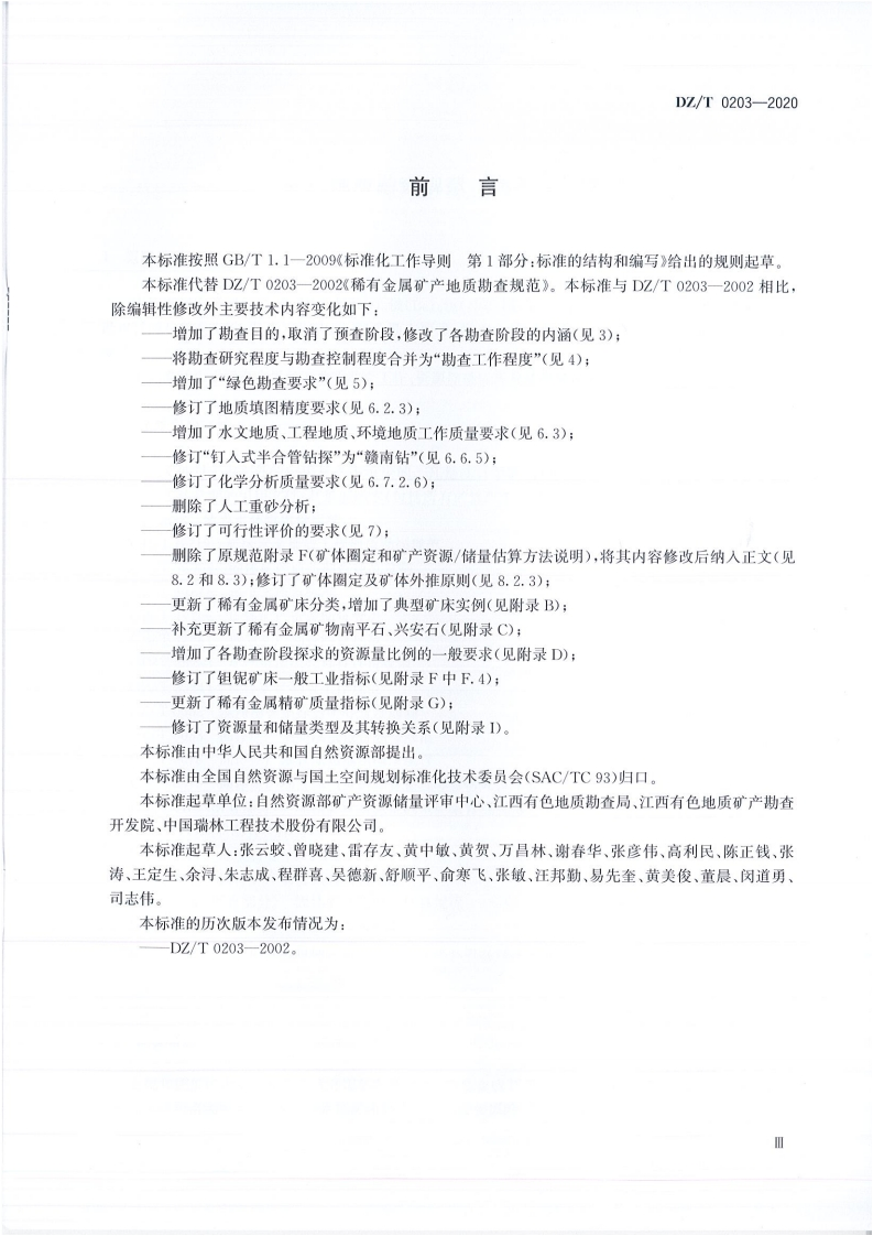 矿产地质勘查规范稀有金属类Specificationsforraremetalmineralexploration348072@abc7小时前发布关注私信22.30MB50页037矿产地质勘查规范稀有金属类Specificationsforraremetalmineralexploration此内容为付费资源,请付费后查看¥19¥23黄金会员免费钻石会员免费立即购买您当前未登录!建议登陆后购买,可保存购买订单付费资源 第1页 / 共50页 第2页 / 共50页 第3页 / 共50页 第4页 / 共50页 第5页 / 共50页 试读已结束,还剩45页,您可下载完整版后进行离线阅读 THE END标准规范 文本预览 ICS73.020;73.060.99D12中华人民共和国地质矿产行业标准DZ/T0203—2020代替DZ/T0203-2002矿产地质勘查规范稀有金属类Specifications for rare metal mineral exploration2020-04-30发布2020-04-30实施中华人民共和国自然资源部发布 查看更多 收起部分 喜欢就支持一下吧收藏