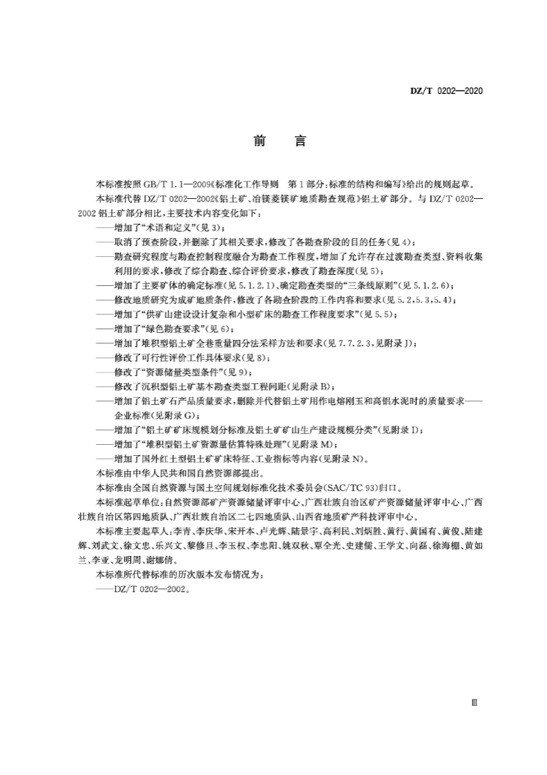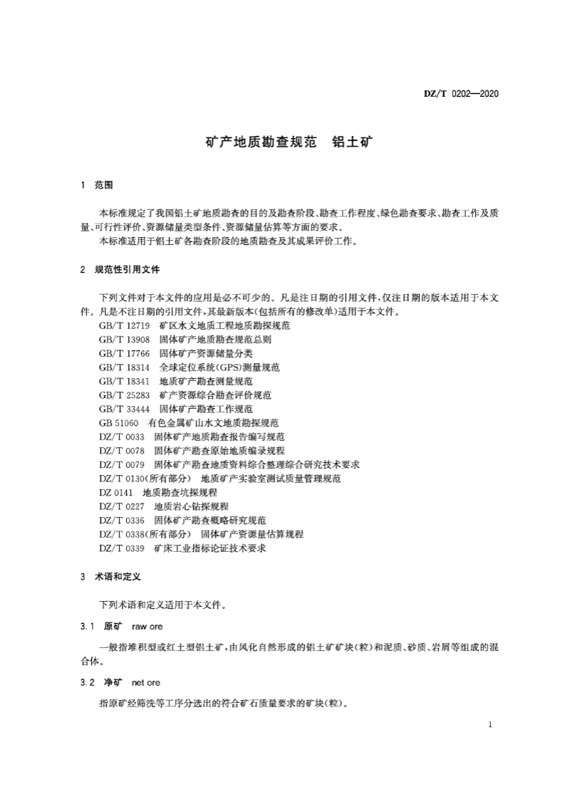 矿产地质勘查规范铝土矿Specificationsforbauxitemineralexploration348072@abc6小时前发布关注私信5.63MB52页032矿产地质勘查规范铝土矿Specificationsforbauxitemineralexploration此内容为付费资源,请付费后查看¥19¥23黄金会员免费钻石会员免费立即购买您当前未登录!建议登陆后购买,可保存购买订单付费资源 第1页 / 共52页 第2页 / 共52页 第3页 / 共52页 第4页 / 共52页 第5页 / 共52页 试读已结束,还剩47页,您可下载完整版后进行离线阅读 THE END标准规范 文本预览 1CS73.020:73.060.40D1202中华人民共和国地质矿产行业标准DZ/T0202一2020代替DZ/T0202一2002铝土矿部分矿产地质勘查规范铝土矿Specifications for bauxite mineral exploration2020-04-30发布2020-04-30实施中华人民共和国自然资源部发布 查看更多 收起部分 喜欢就支持一下吧收藏