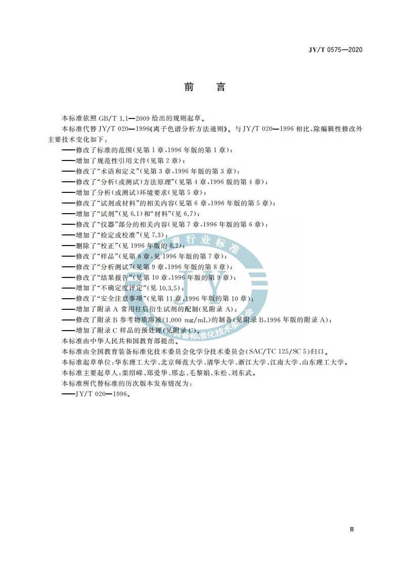 离子色谱分析方法通则2hGeneralrulesofanalyticalmethodsforionchromatography名348072@abc3小时前发布关注私信1.21MB24页039离子色谱分析方法通则2hGeneralrulesofanalyticalmethodsforionchromatography名此内容为付费资源,请付费后查看¥19¥23黄金会员免费钻石会员免费立即购买您当前未登录!建议登陆后购买,可保存购买订单付费资源 第1页 / 共24页 第2页 / 共24页 第3页 / 共24页 第4页 / 共24页 第5页 / 共24页 试读已结束,还剩19页,您可下载完整版后进行离线阅读 THE END标准规范 文本预览 ICS03.180Y51JY中华人民共和国教育行业标准JY/T0575-2020代替JY/T020-1996离子色谱分析方法通则标准General rules of analytical methods for ion chromatographyJY月全国教育装备标准化技术委员2020-09-29发布2020-12-01实施中华人民共和国教育部发布 查看更多 收起部分 喜欢就支持一下吧收藏
