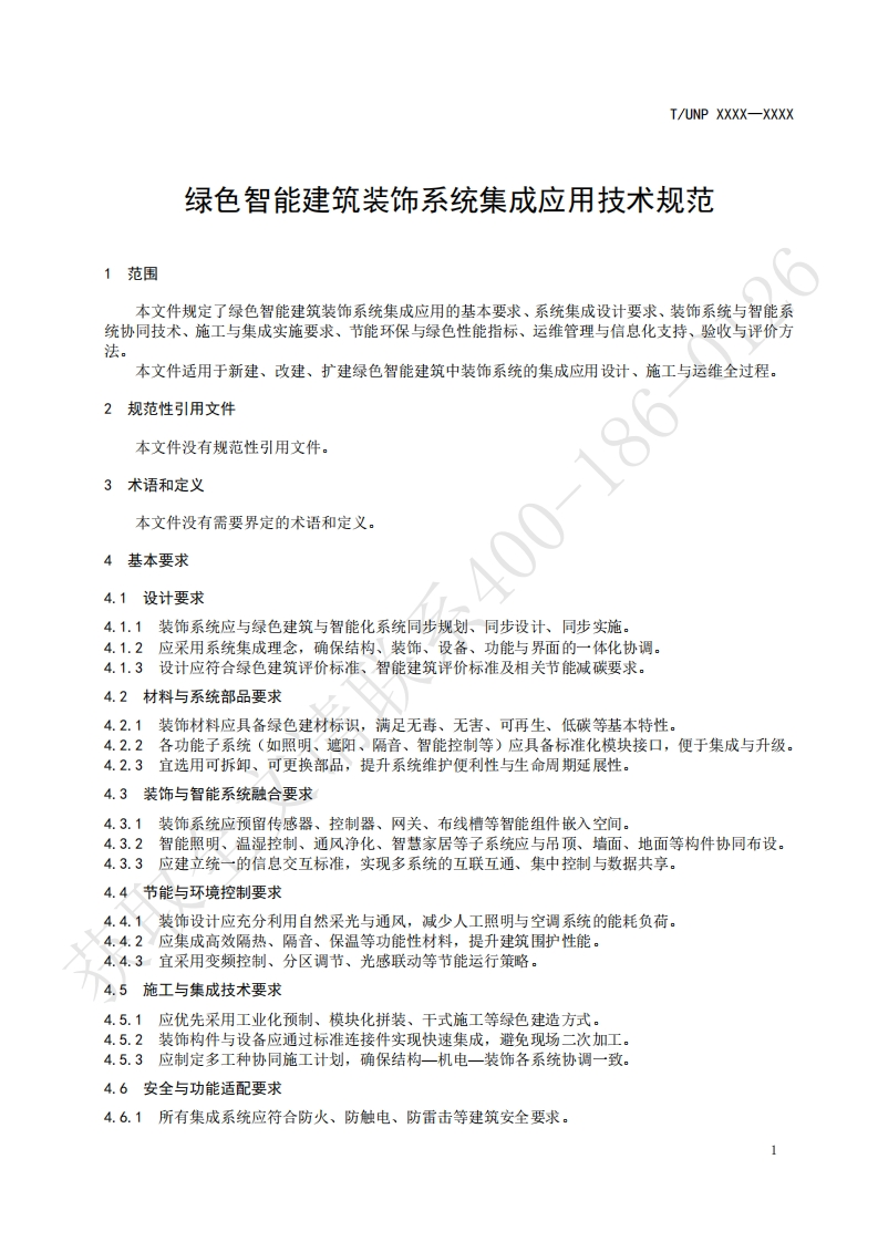 绿色智能建筑装饰系统集成应用技术规范Specificationforintegratedapplicationtechnologyofgreenintelligentbuildingdecorationsvstems348072@abc昨天发布关注私信0.18MB4页041绿色智能建筑装饰系统集成应用技术规范Specificationforintegratedapplicationtechnologyofgreenintelligentbuildingdecorationsvstems此内容为付费资源,请付费后查看¥19¥23黄金会员免费钻石会员免费立即购买您当前未登录!建议登陆后购买,可保存购买订单付费资源 第1页 / 共4页 第2页 / 共4页 第3页 / 共4页 第4页 / 共4页 已完成全部阅读,共4页 THE END标准规范 文本预览 ICS91.080.10UNSPSC 72.15.36CCSP32UNP团体标准T/UNP XXXX-XXXX绿色智能建筑装饰系统集成应用技术规范Specification for integrated application technology of green intelligent buildingdecoration systems文请联在提交反债意见时,请将您知道的相关专利连同支持性文件一并附上。获取XXXx-x-XX发布XXXX-x-XX实施中国联合国采购促进会发布 查看更多 收起部分 喜欢就支持一下吧收藏
