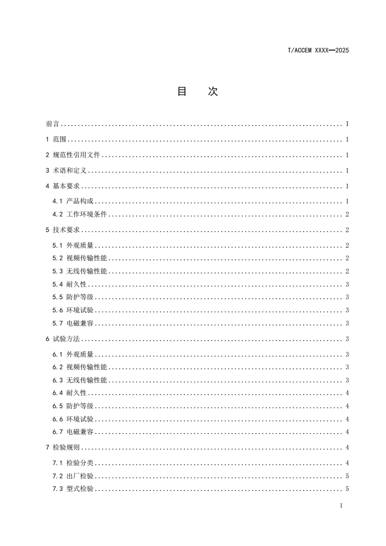 ICS33.040.50CCS M 19T/ACCEM团体标准T/ACCEM XXXX-2025胃肠管道内窥超宽带(UWB):视频数据传输装置技术要求Technical requirements for gastrointestinal endoscopic ultra-wideband(UWB)videodata transmission devices(征求意见稿)2025-Xx-XX发布2025-XX-XX实施中国商业企业管理协会发布