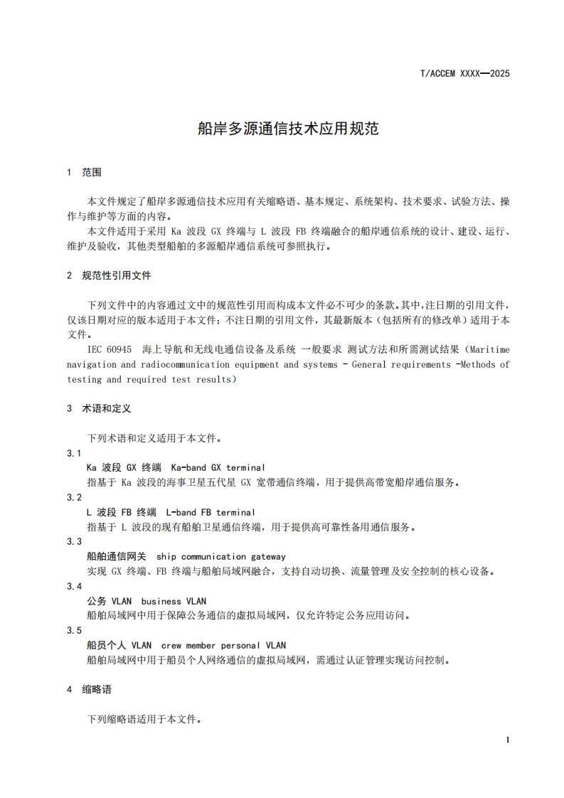 船岸多源通信技术应用规范Applicationspecificationsformulti-sourcecommunicationtechnologybetweenshipsandshores348072@abc前天发布关注私信0.85MB18页020船岸多源通信技术应用规范Applicationspecificationsformulti-sourcecommunicationtechnologybetweenshipsandshores此内容为付费资源,请付费后查看¥19¥23黄金会员免费钻石会员免费立即购买您当前未登录!建议登陆后购买,可保存购买订单付费资源 第1页 / 共18页 第2页 / 共18页 第3页 / 共18页 第4页 / 共18页 第5页 / 共18页 试读已结束,还剩13页,您可下载完整版后进行离线阅读 THE END标准规范 文本预览 ICS33.060CCS R 28IACCEM团体标准T/ACCEM XXXX-2025船岸多源通信技术应用规范Application specifications for multi-source communication technology betweenships and shores(征求意见稿)2025-XX-XX发布2025-XX-XX实施中国商业企业管理协会发布 查看更多 收起部分 喜欢就支持一下吧收藏