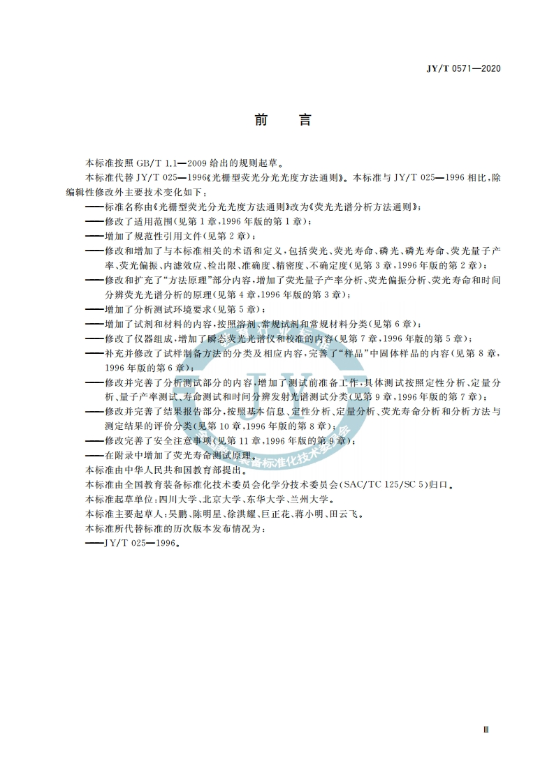 荧光光谱分析方法通则Generalrulesforfluorescencespectrometry教育漩篙标准化会348072@abc前天发布关注私信1.19MB18页048荧光光谱分析方法通则Generalrulesforfluorescencespectrometry教育漩篙标准化会此内容为付费资源,请付费后查看¥19¥23黄金会员免费钻石会员免费立即购买您当前未登录!建议登陆后购买,可保存购买订单付费资源 第1页 / 共18页 第2页 / 共18页 第3页 / 共18页 第4页 / 共18页 第5页 / 共18页 试读已结束,还剩13页,您可下载完整版后进行离线阅读 THE END标准规范 文本预览 ICS03.180Y51JY中华人民共和国教育行业标准JY/T0571-2020代替JY/T025-1996荧光光谱分析方法通则标准General rules for fluorescence spectrometryJY月全国教育装备标准化技术委员么2020-09-29发布2020-12-01实施中华人民共和国教育部发布 查看更多 收起部分 喜欢就支持一下吧收藏