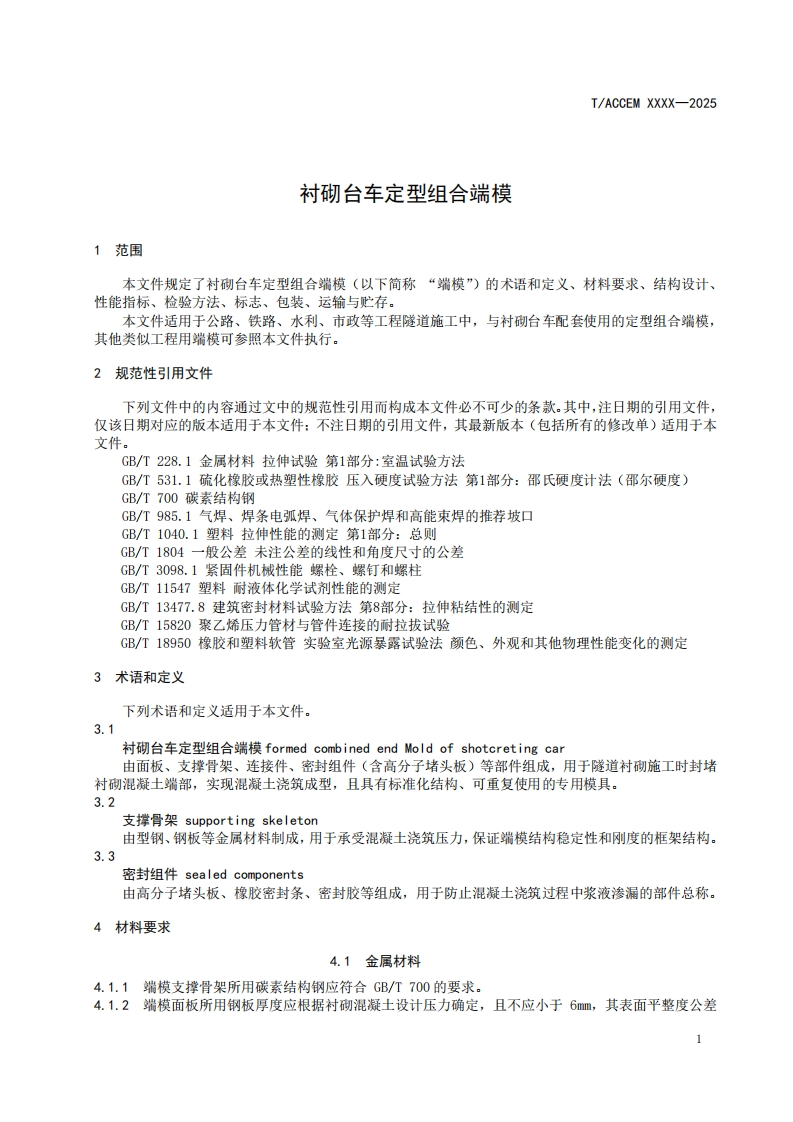 衬砌台车定型组合端模FormedCombinedEndMoldofShotcretingCar348072@abc3天前发布关注私信0.26MB7页040衬砌台车定型组合端模FormedCombinedEndMoldofShotcretingCar此内容为付费资源,请付费后查看¥19¥23黄金会员免费钻石会员免费立即购买您当前未登录!建议登陆后购买,可保存购买订单付费资源 第1页 / 共7页 第2页 / 共7页 第3页 / 共7页 第4页 / 共7页 第5页 / 共7页 试读已结束,还剩2页,您可下载完整版后进行离线阅读 THE END标准规范 文本预览 ICS25.120.30CCS Q 70VACCEM团体标准T/ACCEM XXXX-2025衬砌台车定型组合端模Formed Combined End Mold of Shotcreting Car(征求意见稿)2025-Xx-XX发布2025-Xx-XX实施中国商业企业管理协会发布 查看更多 收起部分 喜欢就支持一下吧收藏