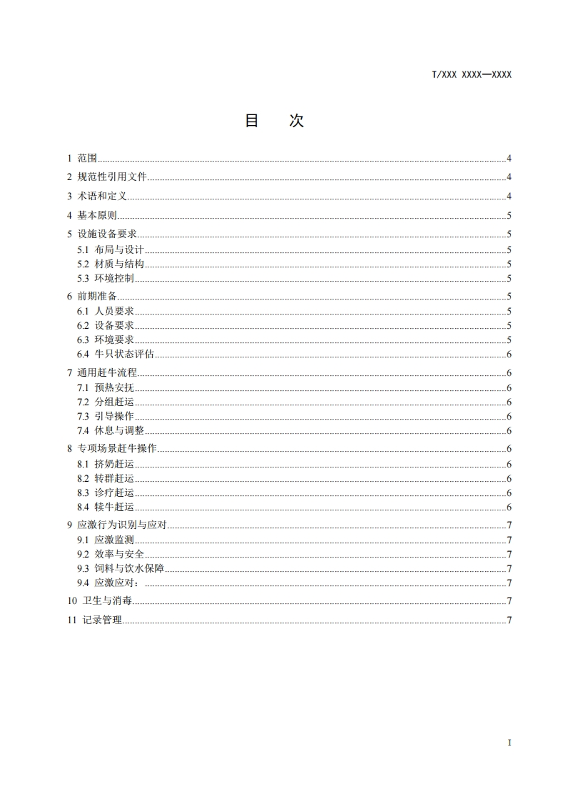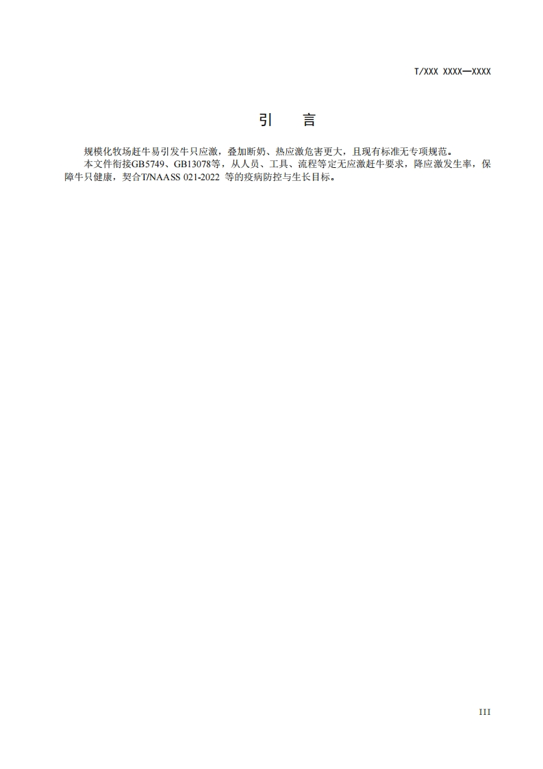 ICS点击此处添加ICS号CCS点击此处添加CCS号T/团体标准T/XXX XXXX-XXXX规模化牧场无应激赶牛技术规范Technical Standards for Stress-Free Dairy Cattle Herding in Large-Scale Dairy Farms草案版次选择第1版在提交反债意见时,请将您知道的相关专利连同支持性文件一并附上。XXXX-XX-XX发布XXXX-XX-XX实施发布