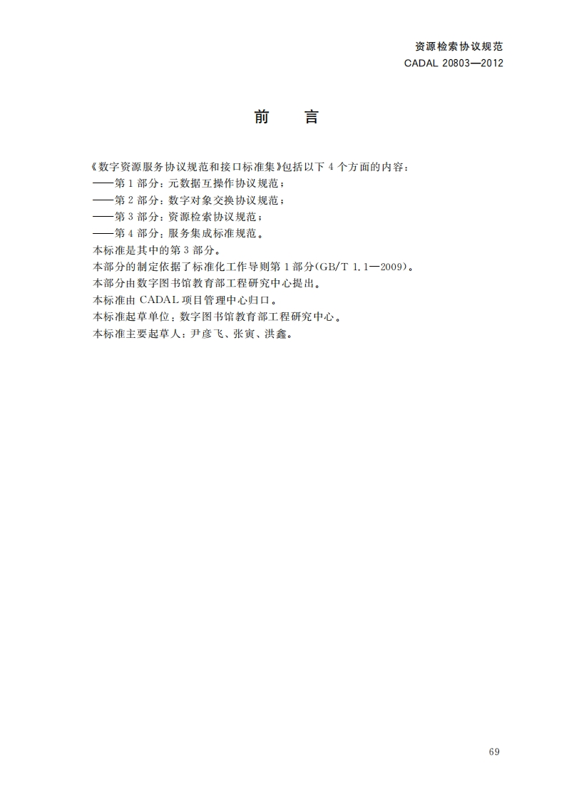 资源检索办议规范RetrievalAgreennentStandard第一稿348072@abc3天前发布关注私信1.23MB31页047资源检索办议规范RetrievalAgreennentStandard第一稿此内容为付费资源,请付费后查看¥19¥23黄金会员免费钻石会员免费立即购买您当前未登录!建议登陆后购买,可保存购买订单付费资源 第1页 / 共31页 第2页 / 共31页 第3页 / 共31页 第4页 / 共31页 第5页 / 共31页 试读已结束,还剩26页,您可下载完整版后进行离线阅读 THE END标准规范 文本预览 1CS01.140.20A14C A D A L项目标准CADAL20803-2012资源检索协议规范Retrieval Agreement Standard第一稿2012-05-08发布201205-09实施CADAL项目管理中心发布 查看更多 收起部分 喜欢就支持一下吧收藏