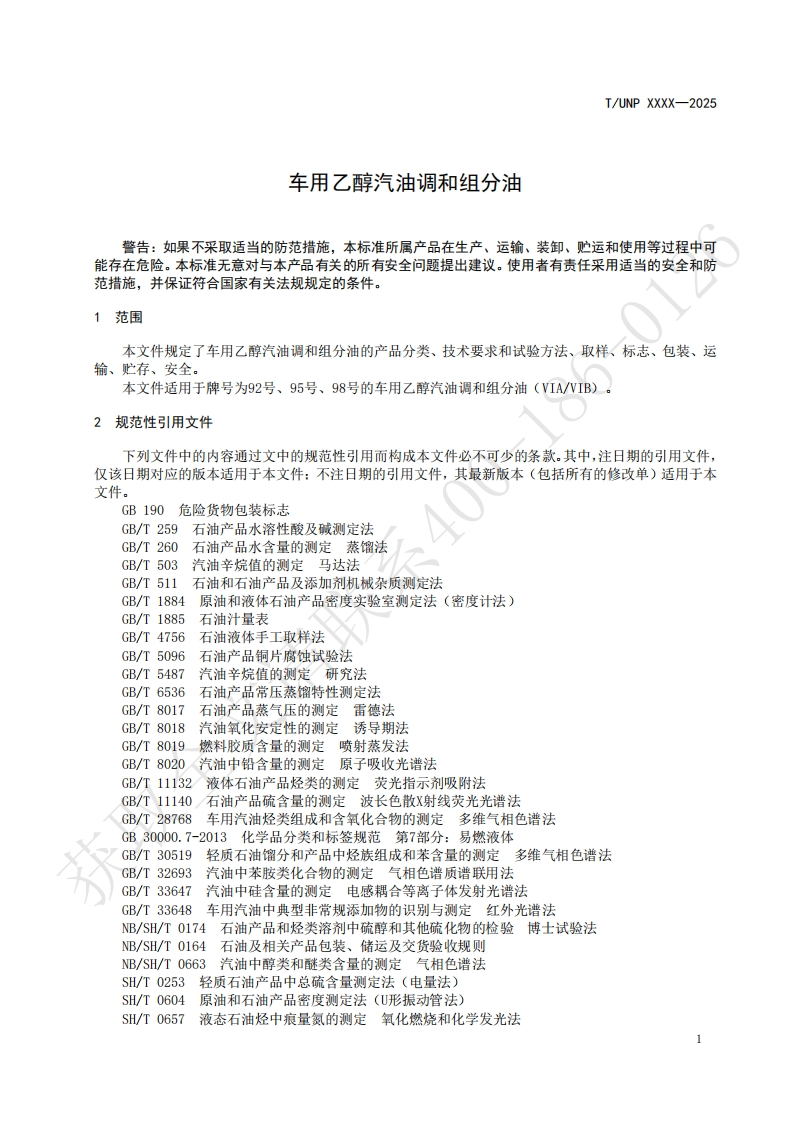 车用乙醇汽油调和组分油Blendingcomponentoilforautomotiveethanolgasoline348072@abc4天前发布关注私信0.23MB7页050车用乙醇汽油调和组分油Blendingcomponentoilforautomotiveethanolgasoline此内容为付费资源,请付费后查看¥19¥23黄金会员免费钻石会员免费立即购买您当前未登录!建议登陆后购买,可保存购买订单付费资源 第1页 / 共7页 第2页 / 共7页 第3页 / 共7页 第4页 / 共7页 第5页 / 共7页 试读已结束,还剩2页,您可下载完整版后进行离线阅读 THE END标准规范 文本预览 ICS75.160.20UNSPSC 15.10.15CCSE31UNP团体标准T/UNP XXXX-2025车用乙醇汽油调和组分油Blending component oil for automotive ethanol gasoline获取全文请联系征求意见稿)2025--发布2025--实施中国联合国采购促进会发布 查看更多 收起部分 喜欢就支持一下吧收藏