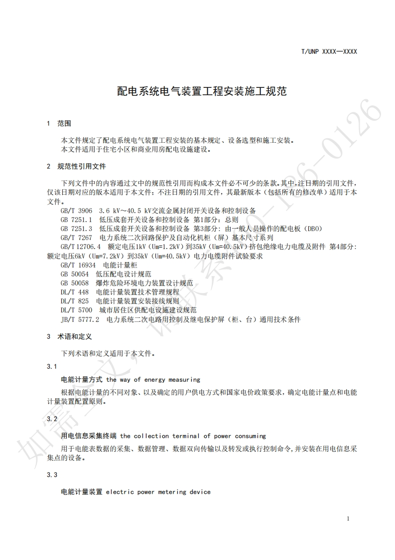 ICS29.240.01UNSPSC 81.10.17CCSF22UNP团体标准T/UNP XXXX-XXXX配电系统电气装置工程安装施工规范Code for construction of power distribution system electric equipment installationengineering在提交反债意见时,请将您知道的相关专利连同支持性文件一并附上。如需XXXX-Xx-XX发布XXXX-x-XX实施中国联合国采购促进会发布