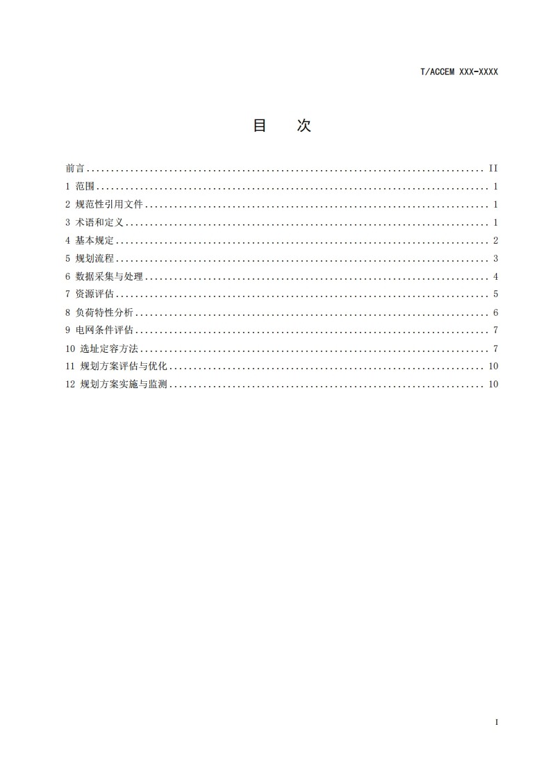 1CS29.240.01CCS F 21IACCEM团体标准T/ACCEM XXXX-XXXX配电网分布式储能及光伏选址定容规划技术导则Technical guidelines for location and capacity planning of distributedenergy storage and PV in distribution network(征求意见稿)20XX-Xx-XX发布20XX-XX-XX实施中国商业企业管理协会发布