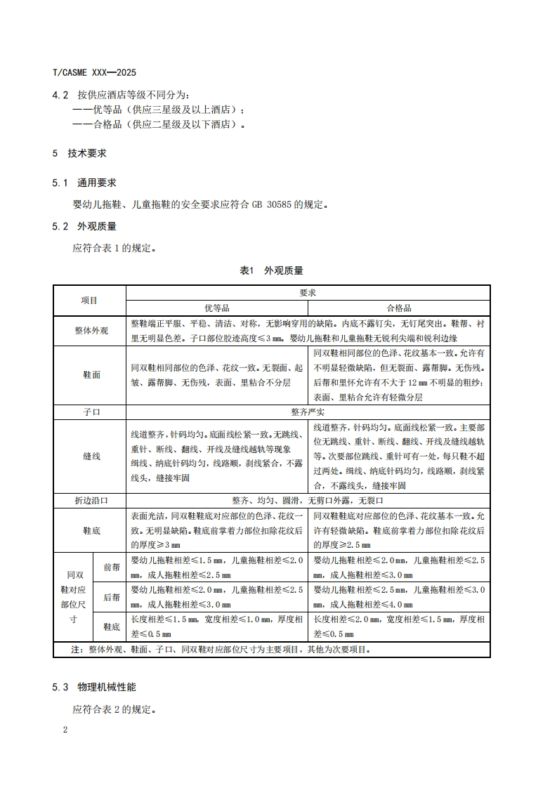 酒店防滑拖鞋Non-slipslippersforhotel348072@abc4天前发布关注私信0.34MB8页029酒店防滑拖鞋Non-slipslippersforhotel此内容为付费资源,请付费后查看¥19¥23黄金会员免费钻石会员免费立即购买您当前未登录!建议登陆后购买,可保存购买订单付费资源 第1页 / 共8页 第2页 / 共8页 第3页 / 共8页 第4页 / 共8页 第5页 / 共8页 试读已结束,还剩3页,您可下载完整版后进行离线阅读 THE END标准规范 文本预览 1CS61.060CCS Y 78TCASME团体标准T/CASME XXX-2025酒店防滑拖鞋Non-sl ip slippers for hotel(征求意见稿)2025-XX-XX发布2025-Xx-XX实施中国中小商业企业协会发布 查看更多 收起部分 喜欢就支持一下吧收藏