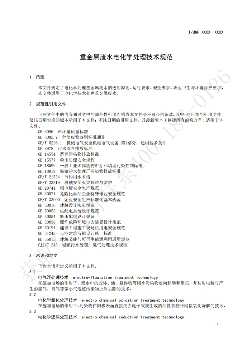重金属废水电化学处理技术规范Technicalspecificationforelectrochemicaltreatmentofheavymetalwastewater青联(草案)(本草案完成时间_)348072@abc4天前发布关注私信0.19MB4页028重金属废水电化学处理技术规范Technicalspecificationforelectrochemicaltreatmentofheavymetalwastewater青联(草案)(本草案完成时间_)此内容为付费资源,请付费后查看¥19¥23黄金会员免费钻石会员免费立即购买您当前未登录!建议登陆后购买,可保存购买订单付费资源 第1页 / 共4页 第2页 / 共4页 第3页 / 共4页 第4页 / 共4页 已完成全部阅读,共4页 THE END标准规范 文本预览 ICS13.020.01UNSPSC 76.12.19CCSZ05UNP团体标准T/UNP XXXX-XXXX重金属废水电化学处理技术规范Technical specification for electrochemical treatment of heavy metal wastewater请联系(草案)(本草案完成时间:)在提交反馈意见时,请将您知道的相关专利连同支持性文件一并附上。获取XXXX-Xx-XX发布XXXX-x-XX实施中国联合国采购促进会发布 查看更多 收起部分 喜欢就支持一下吧收藏