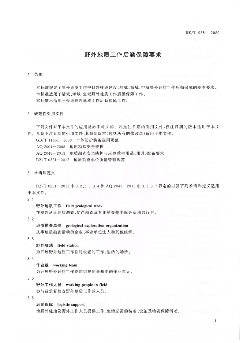 野外地质工作后勤保障要求Requirementsoflogisticsupportforfieldgeologicalwork348072@abc4天前发布关注私信44.24MB23页029野外地质工作后勤保障要求Requirementsoflogisticsupportforfieldgeologicalwork此内容为付费资源,请付费后查看¥19¥23黄金会员免费钻石会员免费立即购买您当前未登录!建议登陆后购买,可保存购买订单付费资源 第1页 / 共23页 第2页 / 共23页 第3页 / 共23页 第4页 / 共23页 第5页 / 共23页 试读已结束,还剩18页,您可下载完整版后进行离线阅读 THE END标准规范 文本预览 ICS07.060D09OZ中华人民共和国地质矿产行业标准DZ/T0351-2020野外地质工作后勤保障要求Requirements of logistic support for field geological work2020-06-16发布2020-10-01实施中华人民共和国自然资源部发布利除层皮南必 查看更多 收起部分 喜欢就支持一下吧收藏