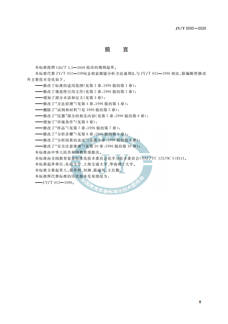 金相显微镜分析方法通则Generalrulesofanalyticalmethodsforthemetallographicmicroscope名348072@abc3天前发布关注私信0.58MB12页044金相显微镜分析方法通则Generalrulesofanalyticalmethodsforthemetallographicmicroscope名此内容为付费资源,请付费后查看¥19¥23黄金会员免费钻石会员免费立即购买您当前未登录!建议登陆后购买,可保存购买订单付费资源 第1页 / 共12页 第2页 / 共12页 第3页 / 共12页 第4页 / 共12页 第5页 / 共12页 试读已结束,还剩7页,您可下载完整版后进行离线阅读 THE END标准规范 文本预览 1CS03.180Y51JY中华人民共和国教育行业标准JY/T0585一2020代替JY/T012-1996金相显微镜分析方法通则General rules of analytical methods for the metallographic microscopeJY月全国教育装备标准化技术委员公2020-09-29发布2020-12-01实施中华人民共和国教育部发布 查看更多 收起部分 喜欢就支持一下吧收藏