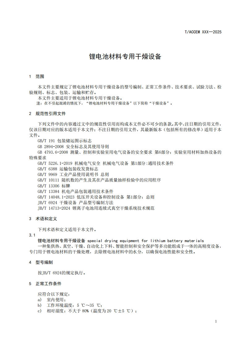 锂电池材料专用干燥设备Specialdryingequipmentforlithiumbatterymaterials在提交反馈意见时请将您知道的相关专利连同支持性文件一并附上。348072@abc4天前发布关注私信0.24MB9页050锂电池材料专用干燥设备Specialdryingequipmentforlithiumbatterymaterials在提交反馈意见时请将您知道的相关专利连同支持性文件一并附上。此内容为付费资源,请付费后查看¥19¥23黄金会员免费钻石会员免费立即购买您当前未登录!建议登陆后购买,可保存购买订单付费资源 第1页 / 共9页 第2页 / 共9页 第3页 / 共9页 第4页 / 共9页 第5页 / 共9页 试读已结束,还剩4页,您可下载完整版后进行离线阅读 THE END标准规范 文本预览 ICS23.160CCS J 78IACCEM团体标准T/ACCEM XXX-2025锂电池材料专用干燥设备Special drying equipment for lithium battery materials(征求意见稿)在提交反馈意见时,请将您知道的相关专利连同支持性文件一并附上。2025-XX-XX发布2025-XX-XX实施中国商业企业管理协会发布 查看更多 收起部分 喜欢就支持一下吧收藏
