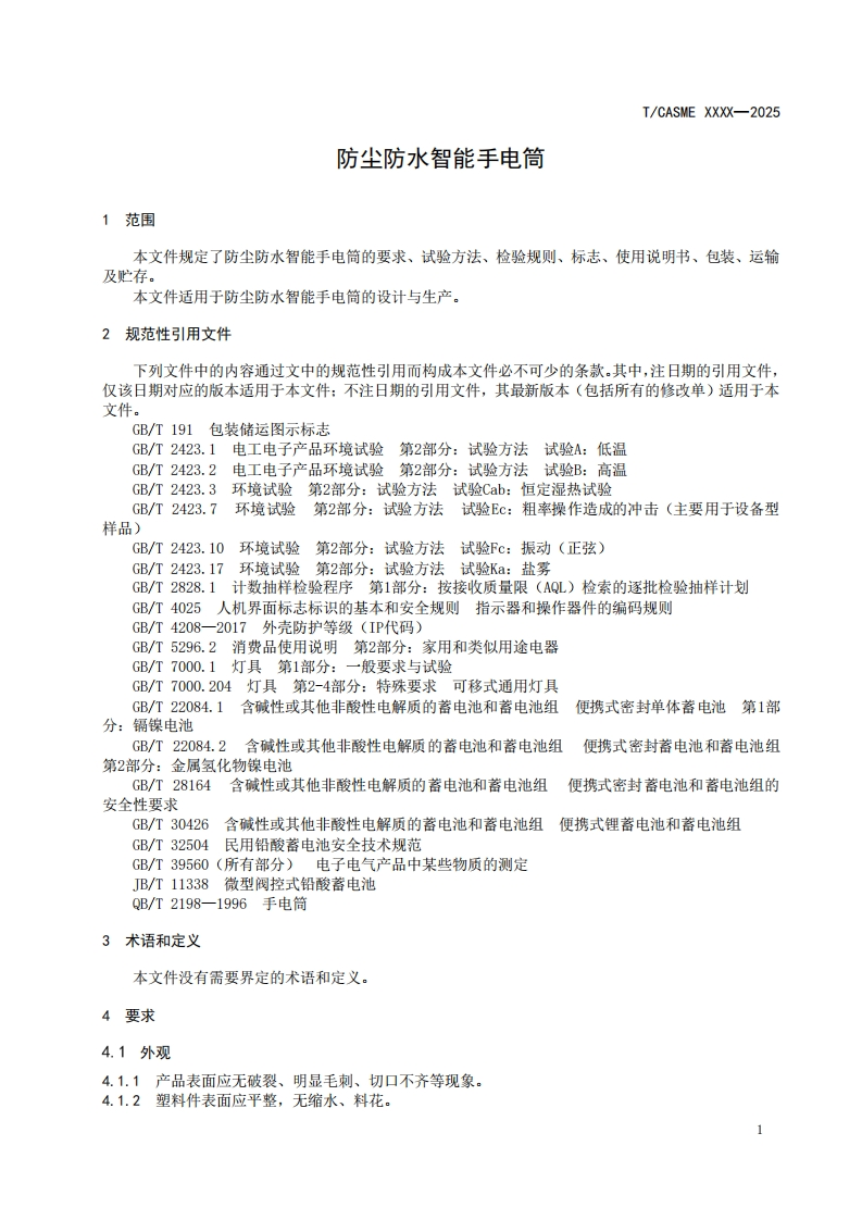 防尘防水智能手电筒Dust-proofandwaterproofsmartflashlight348072@abc4天前发布关注私信0.58MB9页027防尘防水智能手电筒Dust-proofandwaterproofsmartflashlight此内容为付费资源,请付费后查看¥19¥23黄金会员免费钻石会员免费立即购买您当前未登录!建议登陆后购买,可保存购买订单付费资源 第1页 / 共9页 第2页 / 共9页 第3页 / 共9页 第4页 / 共9页 第5页 / 共9页 试读已结束,还剩4页,您可下载完整版后进行离线阅读 THE END标准规范 文本预览 ICS29.140.40CCS K 72T/CASME团体标准T/CASME XXXX-2025防尘防水智能手电筒Dust-proof and waterproof smart flashlight(征求意见稿)2025-XX-XX发布2025-Xx-XX实施中国中小商业企业协会发布 查看更多 收起部分 喜欢就支持一下吧收藏