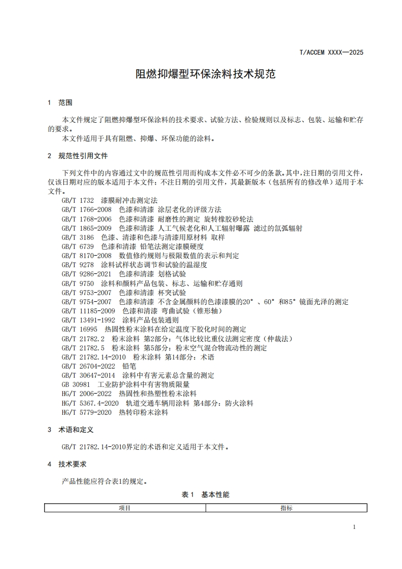阻燃抑爆型环保涂料技术规范Technicalspecificationforflame-retardantandexplosion-suppressantenyironment-friendlycoatings348072@abc4天前发布关注私信0.21MB8页027阻燃抑爆型环保涂料技术规范Technicalspecificationforflame-retardantandexplosion-suppressantenyironment-friendlycoatings此内容为付费资源,请付费后查看¥19¥23黄金会员免费钻石会员免费立即购买您当前未登录!建议登陆后购买,可保存购买订单付费资源 第1页 / 共8页 第2页 / 共8页 第3页 / 共8页 第4页 / 共8页 第5页 / 共8页 试读已结束,还剩3页,您可下载完整版后进行离线阅读 THE END标准规范 文本预览 ICS87.040CCS G51T/ACCEM团体标准T/ACCEM XXXX-2025阻燃抑爆型环保涂料技术规范Technical specification for flame-retardant and explosion-suppressantenvironment-friendly coatings(征求意见稿)2025-Xx-XX发布2025-Xx-XX实施中国商业企业管理协会发布 查看更多 收起部分 喜欢就支持一下吧收藏