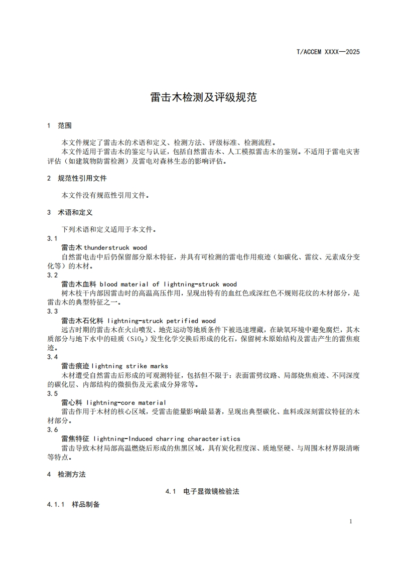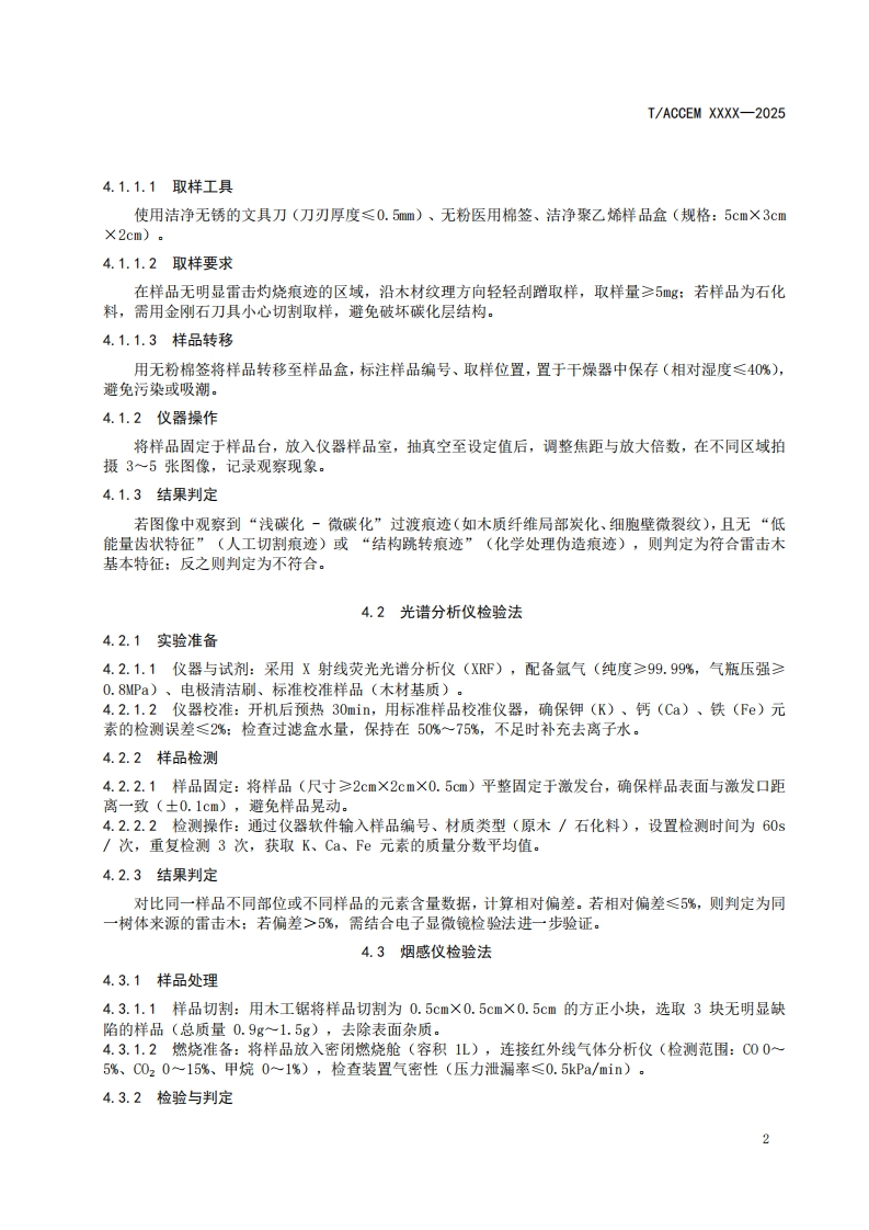 雷击大检测及评级规范DetectionandGradingSpecificationofLightningStrikeWood348072@abc4天前发布关注私信0.27MB10页043雷击大检测及评级规范DetectionandGradingSpecificationofLightningStrikeWood此内容为付费资源,请付费后查看¥19¥23黄金会员免费钻石会员免费立即购买您当前未登录!建议登陆后购买,可保存购买订单付费资源 第1页 / 共10页 第2页 / 共10页 第3页 / 共10页 第4页 / 共10页 第5页 / 共10页 试读已结束,还剩5页,您可下载完整版后进行离线阅读 THE END标准规范 文本预览 ICS79.010CCS B 68IACCEM团体标准T/ACCEM XXXX-2025雷击木检测及评级规范Detection and Grading Specification of Lightning Strike Wood(征求意见稿)2025-Xx-XX发布2025-Xx-XX实施中国商业企业管理协会发布 查看更多 收起部分 喜欢就支持一下吧收藏
