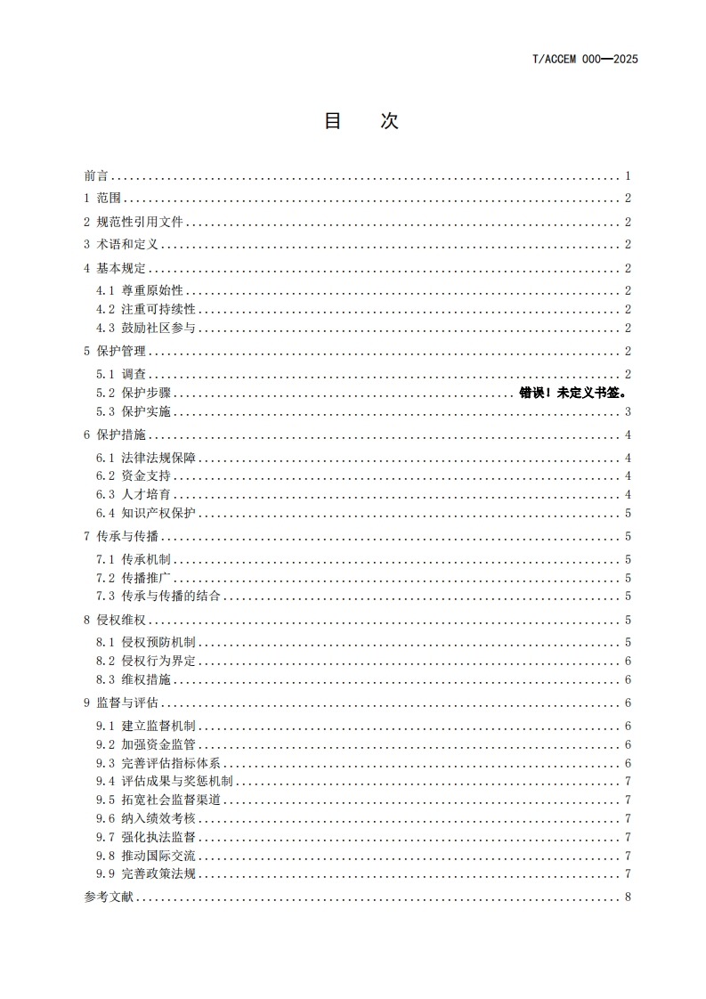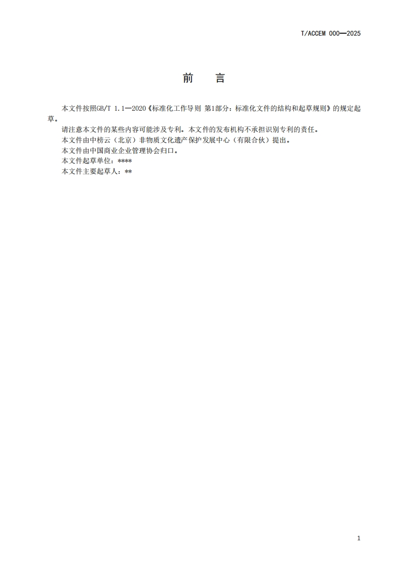 非物质文化遗产保护管理标准Standardsforprotectionandmanagementofintangibleculturalheritage348072@abc4天前发布关注私信0.35MB10页025非物质文化遗产保护管理标准Standardsforprotectionandmanagementofintangibleculturalheritage此内容为付费资源,请付费后查看¥19¥23黄金会员免费钻石会员免费立即购买您当前未登录!建议登陆后购买,可保存购买订单付费资源 第1页 / 共10页 第2页 / 共10页 第3页 / 共10页 第4页 / 共10页 第5页 / 共10页 试读已结束,还剩5页,您可下载完整版后进行离线阅读 THE END标准规范 文本预览 10SccsTTACCEM团体标准T/ACCEM***一2025非物质文化遗产保护管理标准Standards for protection and management of intangible cultural heritage(征求意见稿)在提交反债意见时,请将您知道的相关专利连同支持性文件一并附上。2025-*-*发布2025-*-*实施中国商业企业管理协会发布 查看更多 收起部分 喜欢就支持一下吧收藏