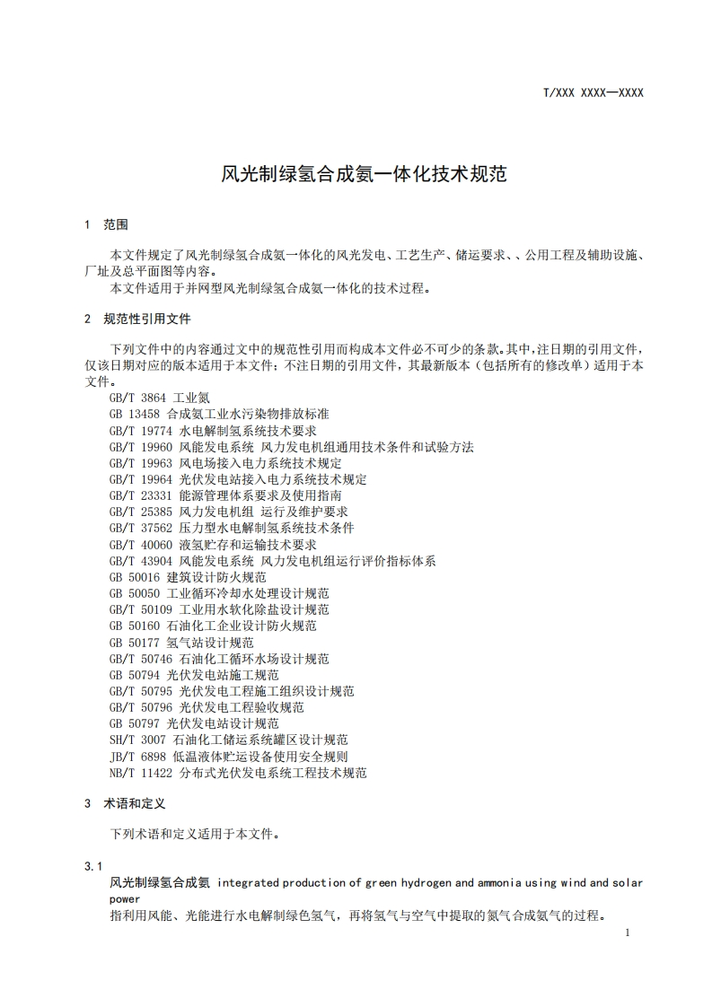 ICS71.020CCS F10TCIEP中国工业环保促进会团体标准T/XXX XXXX-XXXX风光制绿氢合成氨一体化技术规范Technical specifications for integrated green hydrogen and ammonia productionusing wind and solar power(征求意见稿)在提交反馈意见时,请将您知道的相关专利连同支持性文件一并附上。XXXX-Xx-XX发布XXXX-Xx-XX实施中国工业环保促进会发布