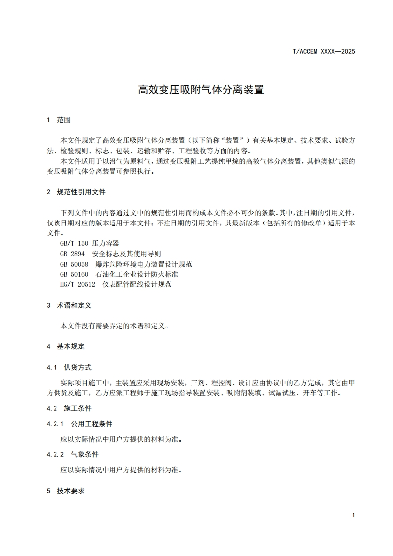 高效变压吸附气体分离装置High-efficiencypressureswingadsorptiongasseparationdevice348072@abc5天前发布关注私信1.47MB23页029高效变压吸附气体分离装置High-efficiencypressureswingadsorptiongasseparationdevice此内容为付费资源,请付费后查看¥19¥23黄金会员免费钻石会员免费立即购买您当前未登录!建议登陆后购买,可保存购买订单付费资源 第1页 / 共23页 第2页 / 共23页 第3页 / 共23页 第4页 / 共23页 第5页 / 共23页 试读已结束,还剩18页,您可下载完整版后进行离线阅读 THE END标准规范 文本预览 ICS71.120CCS J 76I/ACCEM团体标准T/ACCEM XXXX-2025高效变压吸附气体分离装置High-efficiency pressure swing adsorption gas separation device(征求意见稿)2025-XX-XX发布2025-XX-XX实施中国商业企业管理协会发布 查看更多 收起部分 喜欢就支持一下吧收藏