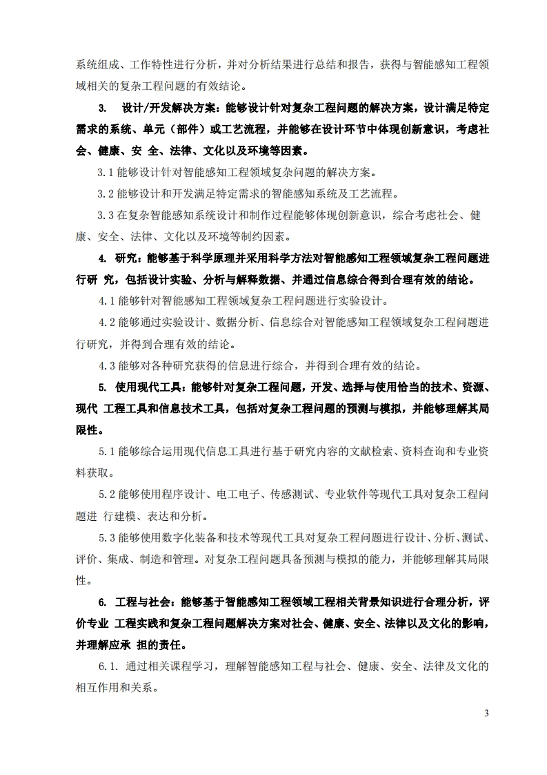 北京理工大学智能感知工程专业培养方案一、学院简介北京理工大学光电学院成立于1953年,学院学科特色鲜明,办学实力雄厚,学术成果显著。学院现有教职工182人,其中中国科学院院士1名、中国工程院院士2名,国家级人才计划入选者10余名,国家四青人才7名,百千万人才工程国家级入选者2名,教育部新(跨)世纪高层次优秀人才13名,北京市教学名师4名:教育部“长江学者与创新团队发展计划”创新团队1个,科技部创新人才推进计划重点领域创新团队1个,北京市优秀教学团队1个。学院拥有光学工程和仪器科学与技术两个一级学科,其中光学工程为国家重点学科。建有光电信息科学与工程、测控技术与仪器、智能感知工程三个本科专业,光电信息科学与工程、测控技术与仪器均获评国家首批一流专业建设点、均通过全国工程教育专业认证。学院承担了一系列国家国防重大重点科研项目,近十年获得国家及省部级科技奖励二十余项。学院建有光电成像技术与系统教育部重点实验室、信息光子技术工信部重点实验室、精密光电测试仪器及技术北京市重点实验室、北京市混合现实与新型显示工程技术研究中心、工程光学国家级虚拟仿真教学实验中心、工信部实验教学示范中心、两个“国家级工程实践教育中心”、两个“北京市校外人才培养基地”、一个“工信部校企协同育人示范基地”,为培养创新人才起到重要支撑作用。二专业简介北京理工大学“智能感知工程”专业为教育部批准设立的新工科专业,2021年首次招生。本专业是智能传感与智能成像、智能感知技术与仪器、智能测试、智能信息处理与认知等与人工智能、信息网络、云计算等多学科交叉而形成的的高新技术密集型综合专业,是“仪器科学与技术”一级学科的重要支撑专业。专业面向国家战略发展与新兴产业需求,以多学科交叉的课程体系和突出实践创新能力培养为特色,培养在智能感知领域具有创建精神和实践能力、适应未来发展的仪器智能化和感知智能化高水平科技领军人才。三、专业培养目标培养符合国家智能感知工程领域发展需求,具有良好的思想品质与职业道德、高度的1