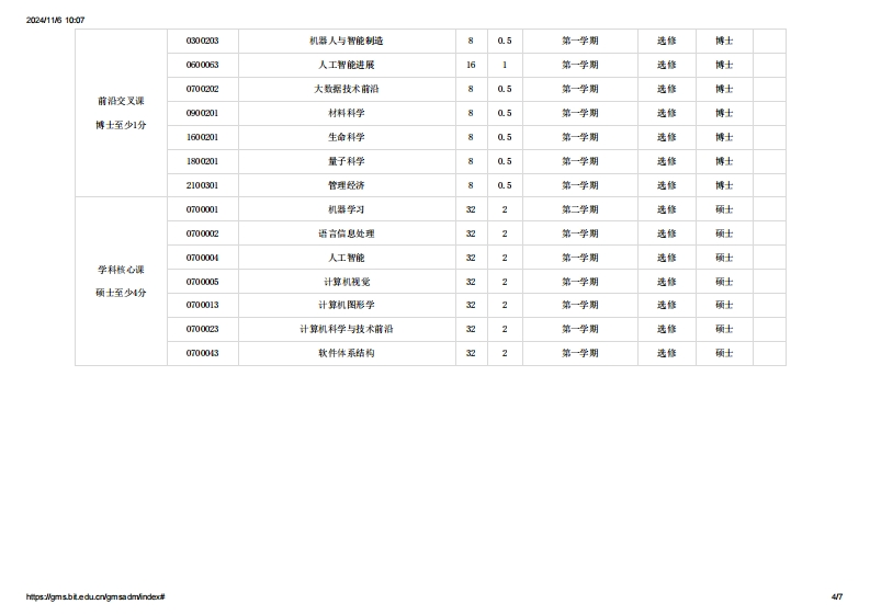 2024W11810-072024年计算机科学与技术学术型研究生(理工类)培养方案(全日制)学科简介与研究方向按照学校一流大学建设总体目标,本学科定位为面向国家和国防发展重大需求,具有承担前沿和基础性研究、支撑国防信息化建设、促进国防工业两化融合能力的国际先进、国内一流的学科。计算机科学与技术学科源于18年设立的计算机专业,北京理工大学是我国最早开展计算机专业教育的高校之一。计算机科学与技术学科水平为A:2024年7月,计算机学科ESI排名进入全球前千分之一,位列第45位:Q5学科排名进入全球150位,位列国内第12位:软科排名位列国内第9位。拥有“计算机应用技术”北京市重点学科、“计算机软件与理论”国防重点学科等多个省部级重点学科。与清华大学联合建设大数据系统软件国家工程实验室,同时拥有国家级大学计算机虚拟仿真实验教学中心、智能信息技术北京市重点实验室、数字表演与仿真技术北京市重点实验室、海量语言信息处理与云计算北京市应用工程中心和信息智能处理与内容安全工信部重点实验室等教学科研平台。本学科包含语言智能与社会计算、图像计算与感知智能、高性能计算与体系结构、软件智能与软件工程、数据科学与知识工程、可视媒体计算。1.语言智能与社会计算方向围绕语言信息的智能处理和社会计算领域的前沿科学问题和国家重大需求,瞄准自然语言处理、社交网络、机器学习和知识图诸等人工智能基础理论和关键技术,主要研究机器甜译、语义计算、自动问答、海量信息挖据与推荐,社会媒体处理、情报处理与奥情分析、信息检索与信息抽取、知识工程、智能辅助决策等。2.图像计算与感知智能方向图像计算与感知智能学科方向面向国家重大需求,瞄准机器智能国际学术前沿,依托计算机北京市重点学科和智能信息技术北京市重点实验室,研究计算视觉与认知、图像/视颜学习与推理、网络媒体数据标注与检索、海量数据分析与可视化、医学影像分析与处理、立体视觉与深度感知、目标识别与跟踪、人脸检测与识别、3D场景重建与交互等理论与方法,研究智能机器人、智能人机交互、智能监控等系统和技术。3.高性能计算与体系结构方向以计算系统各层次体系结构的基础理论、核心技术和高性能科学计算工程相关研发为骨景,在多核计算、网络安全、物联网技术、无线自组网络等方面展开具有国际先进水平的创新性研究。并在多/众核处理器、容迟网路、网络安全等方面得以突破,取得具有国际先进或领先水平的研究成果。4.软件智能与软件工程方向以计算机科学与技术学科软件智能与大数据方向建设为中心,研究基于大数据的智能化软件开发方法与开发环境、复杂软件体系结构、数据库基础理论与关键技术、数据分析的理论方法与技术、跨域数据计算、边缘数据计算、图数据管理与分析,智慧数据计算、海量异构数字资源管理与互操作、智能教育软件与辅助决策、基于大数据和脑科学的辅助诊断、移动互联网软件等。5.数据科学与知识工程方向以计算机科学与技术学科数据科学与知识工程方向建设为中心,研究数据库基础理论与关键技术,数据分析的理论,方法与技术,跨域数据计算,边缘数据计算,图数据管理与分析,智慧数据计算等。6.可视媒体计算方向围绕承载视觉信息的各种可视媒体形式(图形、图像、视频等),研究相应的计算理论和方法,解决计算机图形学、图像/视颖大数据处理、计算摄像学等领域的前沿科学问题。同时,面向深空探测、国防安全等国家重大需求和影视文化等民用需求,开展相应的工程应用。hps:Mgms.btedu.cn/gmsadminde#17