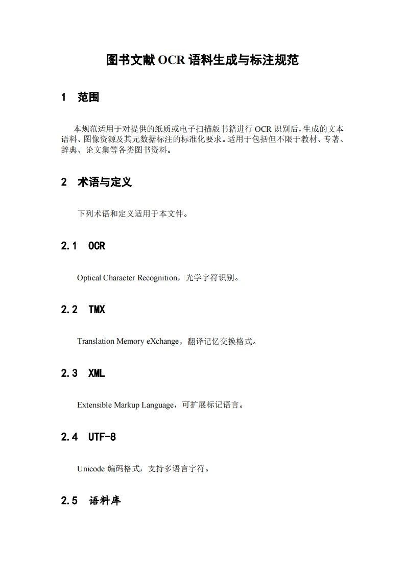 图书文献OCR语料生成与标注规范348072@abc17小时前发布关注私信0.31MB16页042图书文献OCR语料生成与标注规范此内容为付费资源,请付费后查看¥19¥29黄金会员免费钻石会员免费立即购买您当前未登录!建议登陆后购买,可保存购买订单付费资源 第1页 / 共16页 第2页 / 共16页 第3页 / 共16页 第4页 / 共16页 第5页 / 共16页 试读已结束,还剩11页,您可下载完整版后进行离线阅读 THE END土木工程工程机械机械电气设计 文本预览 图书文献OCR语料生成与标注规范Standard for OCR Corpus Generation and Annotation of Books and Documents第二稿二次修订稿 查看更多 收起部分 喜欢就支持一下吧收藏