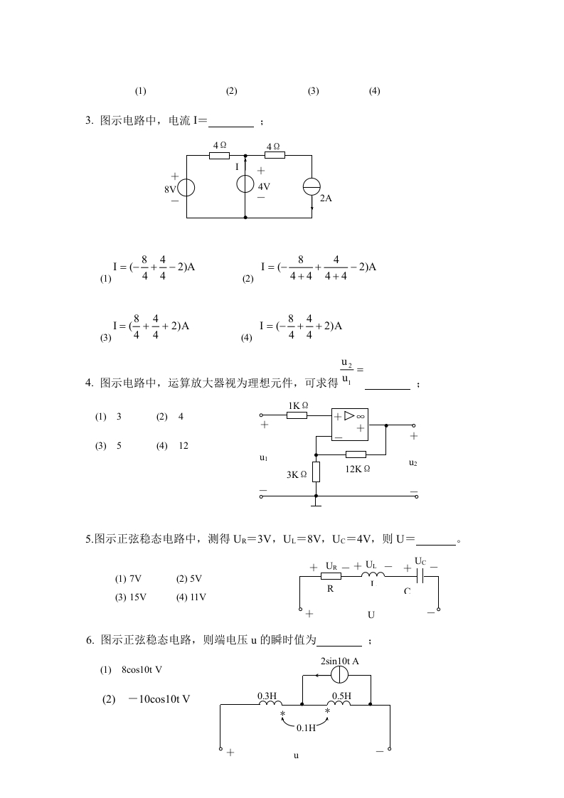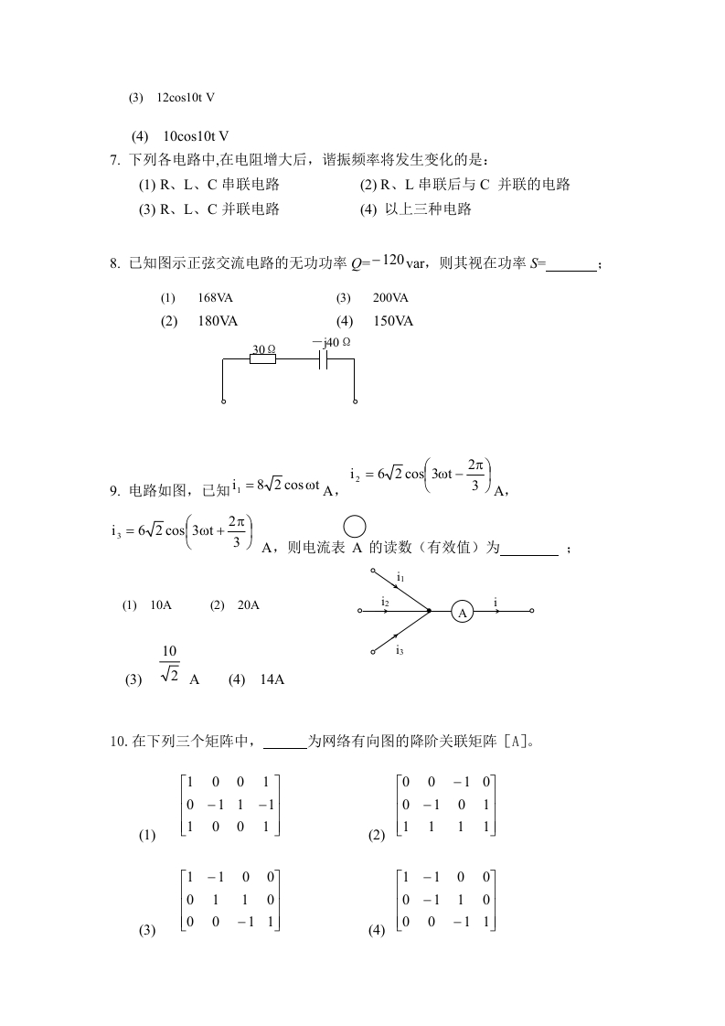 电路试题库试题1348072@abc17小时前发布关注私信0.23MB7页023电路试题库试题1此内容为付费资源,请付费后查看¥19¥29黄金会员免费钻石会员免费立即购买您当前未登录!建议登陆后购买,可保存购买订单付费资源 第1页 / 共7页 第2页 / 共7页 第3页 / 共7页 第4页 / 共7页 第5页 / 共7页 试读已结束,还剩2页,您可下载完整版后进行离线阅读 THE END土木工程工程机械机械电气设计 文本预览 返回电路试题库试卷(答题时间:100分钟)试卷号:DLB2003.1 abcdcba(请考生注意:本试卷共8页)班级姓名学号成绩题号一二三四五六t八得分阅卷人选择题(每题3分,共30分)1.图示电路,电流源的功率为(1)吸收4W(2)发出4W(3)吸收6W(4)发出6W2.图示二端口网络的等效电路为20a4A10L1Uoba4040V 查看更多 收起部分 喜欢就支持一下吧收藏