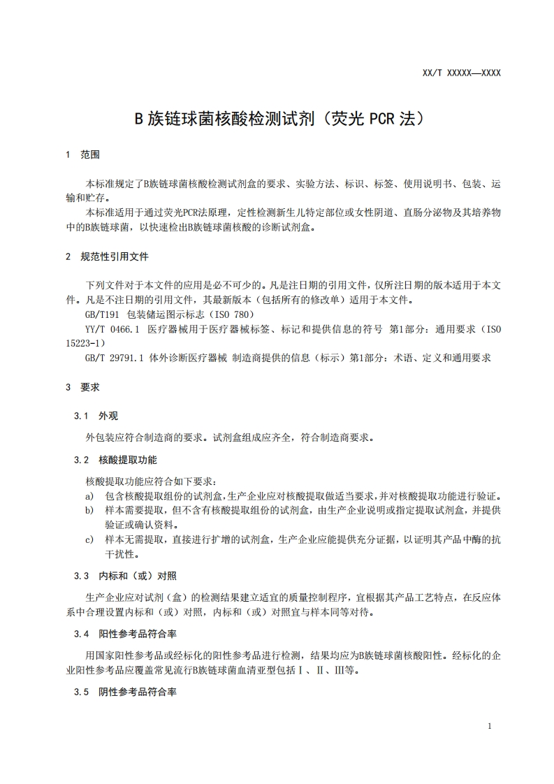 B族链球菌核酸检测试剂(荧光PCR法)GroupBStreptococcusDNAdetectionkit(fluorescentPCR)(征求意见稿)348072@abc3天前发布关注私信0.29MB11页026B族链球菌核酸检测试剂(荧光PCR法)GroupBStreptococcusDNAdetectionkit(fluorescentPCR)(征求意见稿)此内容为付费资源,请付费后查看¥19¥23黄金会员免费钻石会员免费立即购买您当前未登录!建议登陆后购买,可保存购买订单付费资源 第1页 / 共11页 第2页 / 共11页 第3页 / 共11页 第4页 / 共11页 第5页 / 共11页 试读已结束,还剩6页,您可下载完整版后进行离线阅读 THE END标准规范 文本预览 ICS11.100C44中华人民共和国医药行业标准YY/T XXXX-XXXXB族链球菌核酸检测试剂(荧光PCR法)Group B Streptococcus DNA detection kit (fluorescent PCR)(征求意见稿)XXXX-XX-XX发布XXXX-XX-XX实施国家药品监督管理局发布 查看更多 收起部分 喜欢就支持一下吧收藏