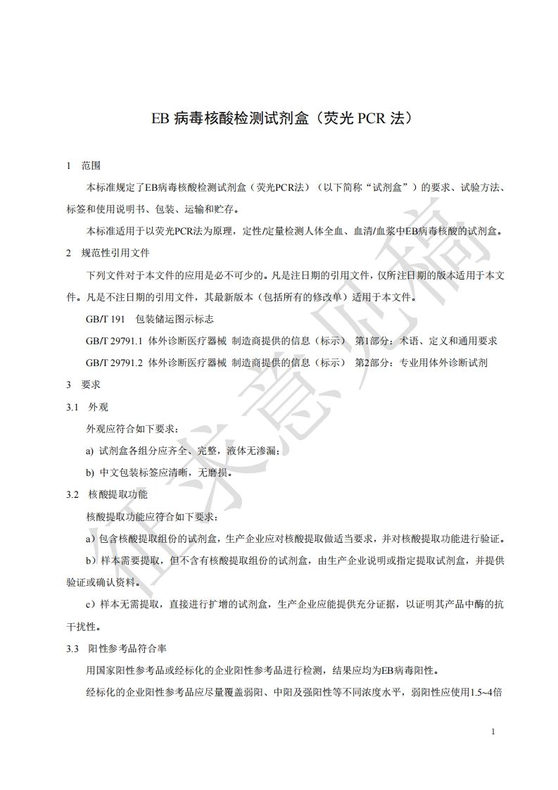 EB病毒核酸检测试剂盒(荧光PCR法)EBViralNucleicAcidsDetectionkit(fluorescentPCR)征求意见稿)348072@abc前天发布关注私信0.27MB8页031EB病毒核酸检测试剂盒(荧光PCR法)EBViralNucleicAcidsDetectionkit(fluorescentPCR)征求意见稿)此内容为付费资源,请付费后查看¥19¥23黄金会员免费钻石会员免费立即购买您当前未登录!建议登陆后购买,可保存购买订单付费资源 第1页 / 共8页 第2页 / 共8页 第3页 / 共8页 第4页 / 共8页 第5页 / 共8页 试读已结束,还剩3页,您可下载完整版后进行离线阅读 THE END标准规范 文本预览 ICS11.100C44中华人民共和国医药行业标准YYTXXXX-XXXXEB病毒核酸检测试剂盒(荧光PCR法)EB Viral Nucleic Acids Detection kit(fluorescent PCR)(征求意见稿)XXXX-XX-XX发布XXXX-XX-XX实施国家药品监督管理局发布 查看更多 收起部分 喜欢就支持一下吧收藏