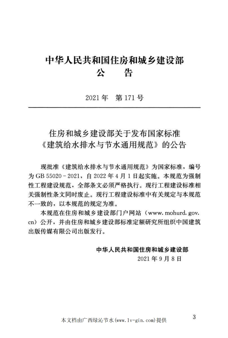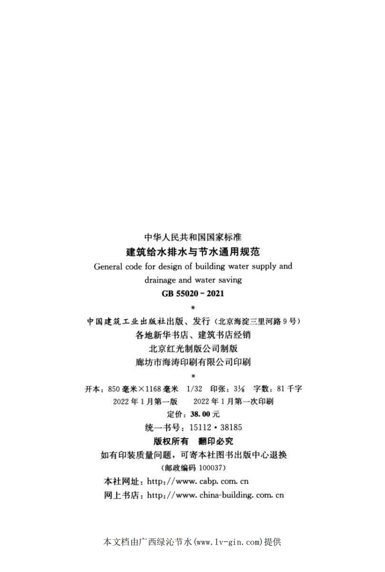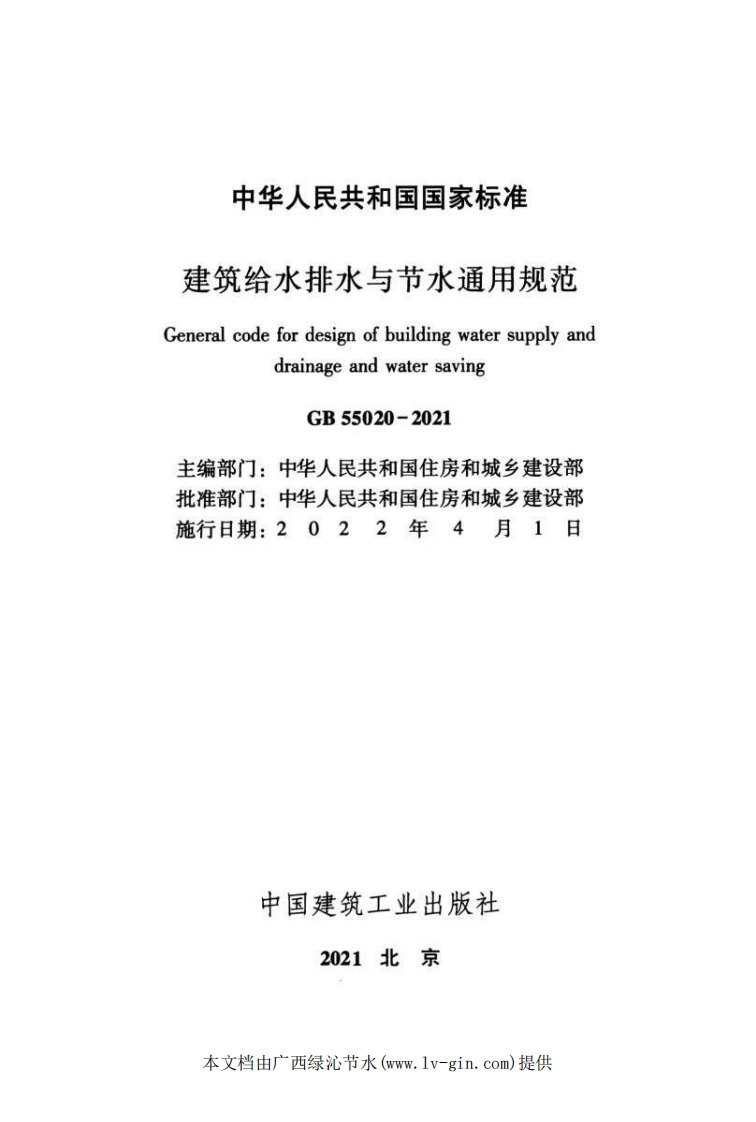 GB55020-2021348072@abc前天发布关注私信10.66MB99页039GB55020-2021此内容为付费资源,请付费后查看¥19¥23黄金会员免费钻石会员免费立即购买您当前未登录!建议登陆后购买,可保存购买订单付费资源 第1页 / 共99页 第2页 / 共99页 第3页 / 共99页 第4页 / 共99页 第5页 / 共99页 试读已结束,还剩94页,您可下载完整版后进行离线阅读 THE END标准规范 文本预览 UDC中华人民共和国国家标准PGB55020-2021建筑给水排水与节水通用规范General code for design of building water supply anddrainage and water saving2021-09-08发布2022-04-01实施中华人民共和国住房和城乡建设部联合发布国家市场监督管理总局本文档由广西绿沁节水(www.1v-gin.com)提供 查看更多 收起部分 喜欢就支持一下吧收藏