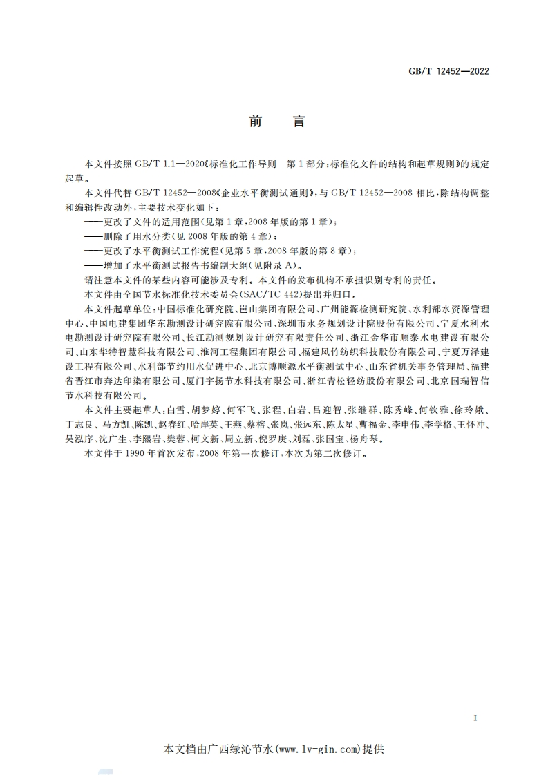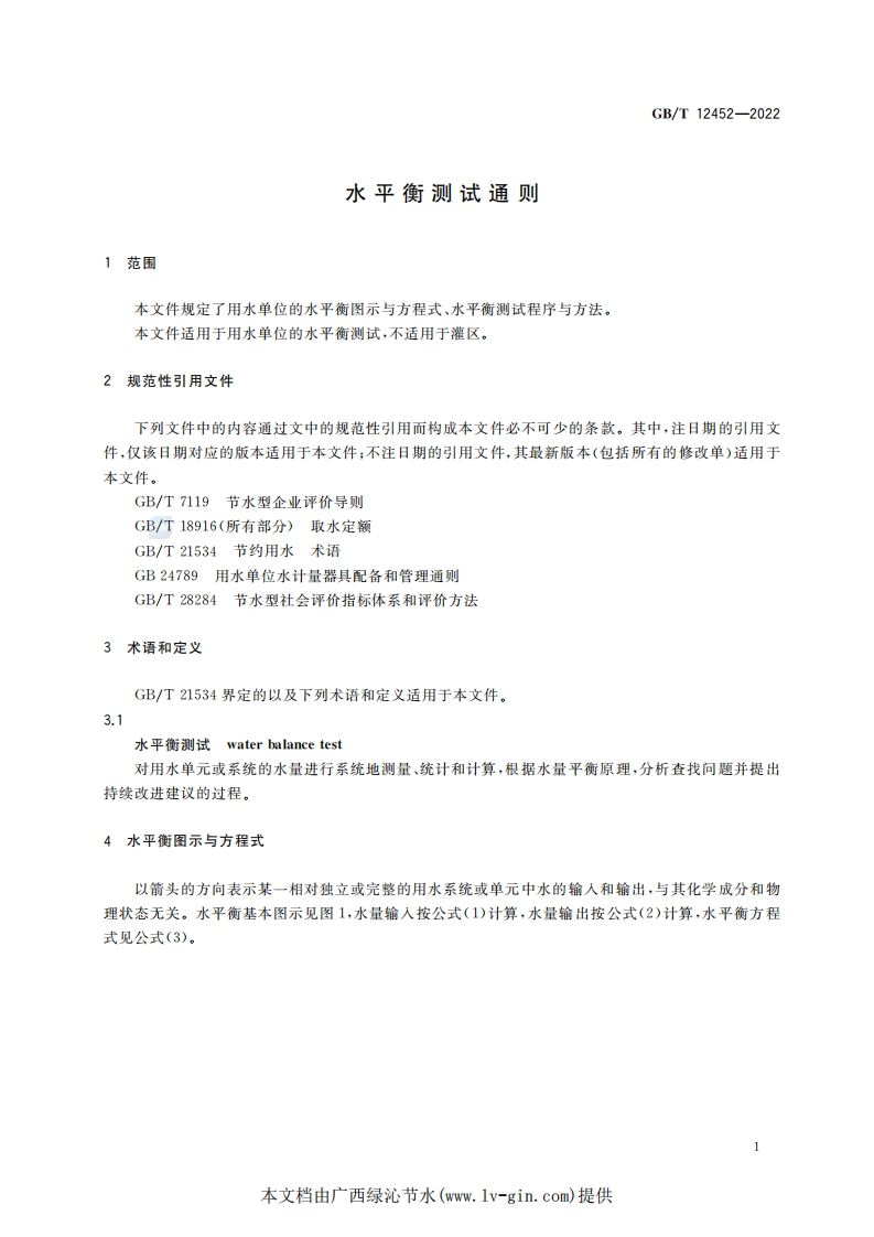 GBT12452-2022348072@abc前天发布关注私信0.65MB21页023GBT12452-2022此内容为付费资源,请付费后查看¥19¥23黄金会员免费钻石会员免费立即购买您当前未登录!建议登陆后购买,可保存购买订单付费资源 第1页 / 共21页 第2页 / 共21页 第3页 / 共21页 第4页 / 共21页 第5页 / 共21页 试读已结束,还剩16页,您可下载完整版后进行离线阅读 THE END标准规范 文本预览 1Cs17.120.01CCS F 04中华人民共和国国家标准GB/T12452一2022代替GB/T12452一2008水平衡测试通则General principles of water balance test2022-07-11发布2022-11-01实施国家市场监督管理总局发布国家标准化管理委员会本文档由广西绿沁节水(www.1v-gin.com)提供 查看更多 收起部分 喜欢就支持一下吧收藏