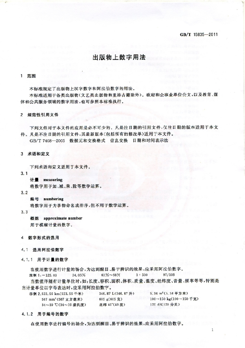 GB《出版物上数字用法》(2011版)348072@abc昨天发布关注私信3.56MB10页037GB《出版物上数字用法》(2011版)此内容为付费资源,请付费后查看¥19¥23黄金会员免费钻石会员免费立即购买您当前未登录!建议登陆后购买,可保存购买订单付费资源 第1页 / 共10页 第2页 / 共10页 第3页 / 共10页 第4页 / 共10页 第5页 / 共10页 试读已结束,还剩5页,您可下载完整版后进行离线阅读 THE END标准规范 文本预览 1CS01.140.10A19GB中华人民共和国国家标准GB/T15835-2011代替GB/T15835一1995出版物上数字用法General rules for writing numerals in public texts2011-07-29发布2011-11-01实施中华人民共和国国家质量监督检验检疫总局中国国家标准化管理委员会发布数码防因 查看更多 收起部分 喜欢就支持一下吧收藏