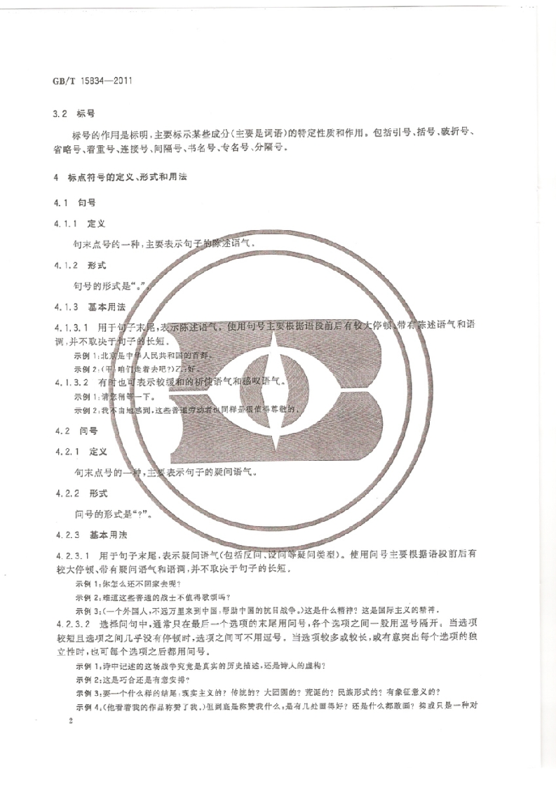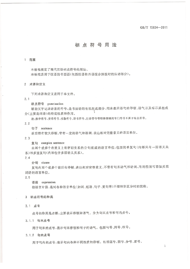 GB《标点符号用法》(2011)348072@abc昨天发布关注私信14.74MB25页028GB《标点符号用法》(2011)此内容为付费资源,请付费后查看¥19¥23黄金会员免费钻石会员免费立即购买您当前未登录!建议登陆后购买,可保存购买订单付费资源 第1页 / 共25页 第2页 / 共25页 第3页 / 共25页 第4页 / 共25页 第5页 / 共25页 试读已结束,还剩20页,您可下载完整版后进行离线阅读 THE END标准规范 文本预览 1cs01.140.10A19中华人民共和国国家标准GB/T15834-2011代替GB/T15834一1995标点符号用法General rules for punctuation2011-12-30发布2012-06-01实施中华人民共和国国家质量监督检验检疫总局发布中国国家标准化管理委员会 查看更多 收起部分 喜欢就支持一下吧收藏