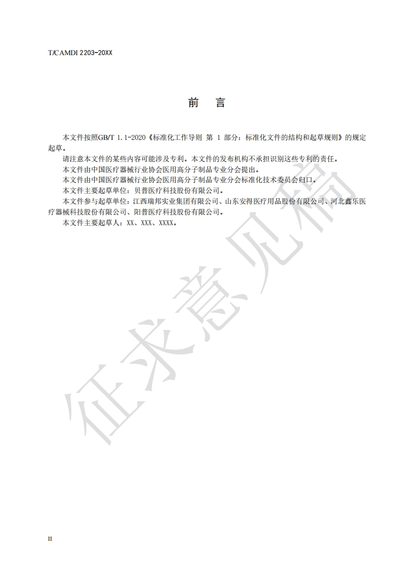 ICS11.040.20CCS C 31中国医疗器械行业协会China Association for Medical Devices Industry团体标准T/CAMDI 2203/CD-20XX一次性使用可见回血式人体静脉血样采集针Single-use for visible backward human venous blood specimen collection(征求意见稿)在提交反馈意见时,请将您知道的相关专利连同支持性文件一并附上。202X-XX-XX发布20XX-XX-XX实施中国医疗器械行业协会发布