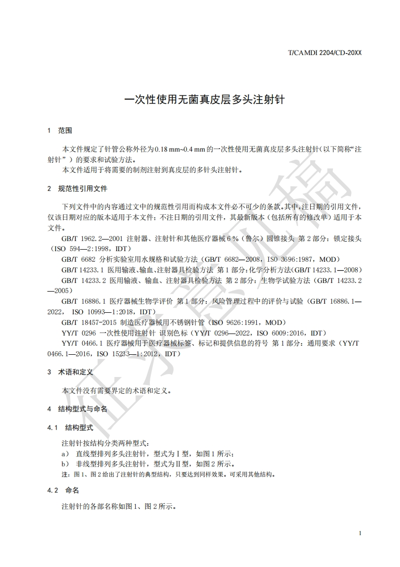 一次性使用无菌真皮层多头注射针(征求意见稿)在提交反馈意见时请将您知道的相关专利连同支持性文件一并附上348072@abc昨天发布关注私信1.15MB20页047一次性使用无菌真皮层多头注射针(征求意见稿)在提交反馈意见时请将您知道的相关专利连同支持性文件一并附上此内容为付费资源,请付费后查看¥19¥23黄金会员免费钻石会员免费立即购买您当前未登录!建议登陆后购买,可保存购买订单付费资源 第1页 / 共20页 第2页 / 共20页 第3页 / 共20页 第4页 / 共20页 第5页 / 共20页 试读已结束,还剩15页,您可下载完整版后进行离线阅读 THE END标准规范 文本预览 ICS×CCSC××中国医疗器械行业协会China Association for Medical Devices Industry团体标准T/CAMDI 2204/CD-20XX一次性使用无菌真皮层多头注射针(征求意见稿)在提交反馈意见时,请将您知道的相关专利连同支持性文件一并附上。××X×-××-××发布××××-××-××实施中国医疗器械行业协会发布 查看更多 收起部分 喜欢就支持一下吧收藏