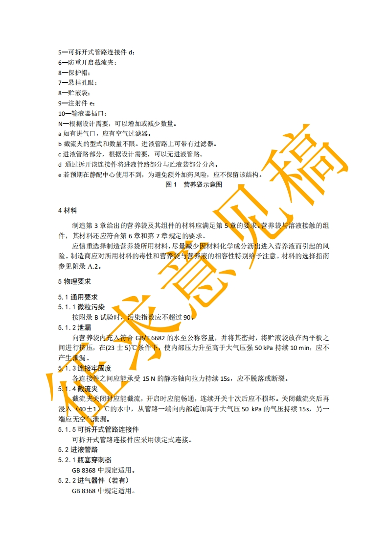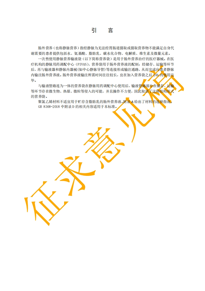 一次性使用静脉营养输液袋Parenteralnutrientcontainersforsingleuse(征求意见稿)(本稿完成日期_2019-07-18)请将您知道的相关专利连同支持性文件一并附上在提交反馈意见时348072@abc昨天发布关注私信0.79MB13页026一次性使用静脉营养输液袋Parenteralnutrientcontainersforsingleuse(征求意见稿)(本稿完成日期_2019-07-18)请将您知道的相关专利连同支持性文件一并附上在提交反馈意见时此内容为付费资源,请付费后查看¥19¥23黄金会员免费钻石会员免费立即购买您当前未登录!建议登陆后购买,可保存购买订单付费资源 第1页 / 共13页 第2页 / 共13页 第3页 / 共13页 第4页 / 共13页 第5页 / 共13页 试读已结束,还剩8页,您可下载完整版后进行离线阅读 THE END标准规范 文本预览 1c511.040.20C31YY中华人民共和国医药行业标准YYT0611—20**代替YY0611-2007一次性使用静脉营养输液袋Parenteral nutrient containers for single use(征求意见稿)(本稿完成日期:2019-07-18)在提交反馈意见时,请将您知道的相关专利连同支持性文件一并附上。××X×-X×-××发布××××-××-××实施国家药品监督管理局发布 查看更多 收起部分 喜欢就支持一下吧收藏