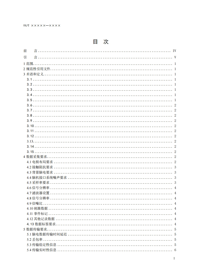 ICS35.200CCS C39中华人民共和国医药行业标准YYT××××x一XXXX人工智能医疗器械脑机接口脑电数据专用要求Artificial intelligence medical device-Special requirements for EEG data used inbrain computer interface(工作组讨论稿)(2024年9月)在提交反馈意见时,请将您知道的相关专利连同支持性文件一并附上。××××-X×-××发布×××-×一×实施国家市场监督管理总局国家标准化管理委员会发布