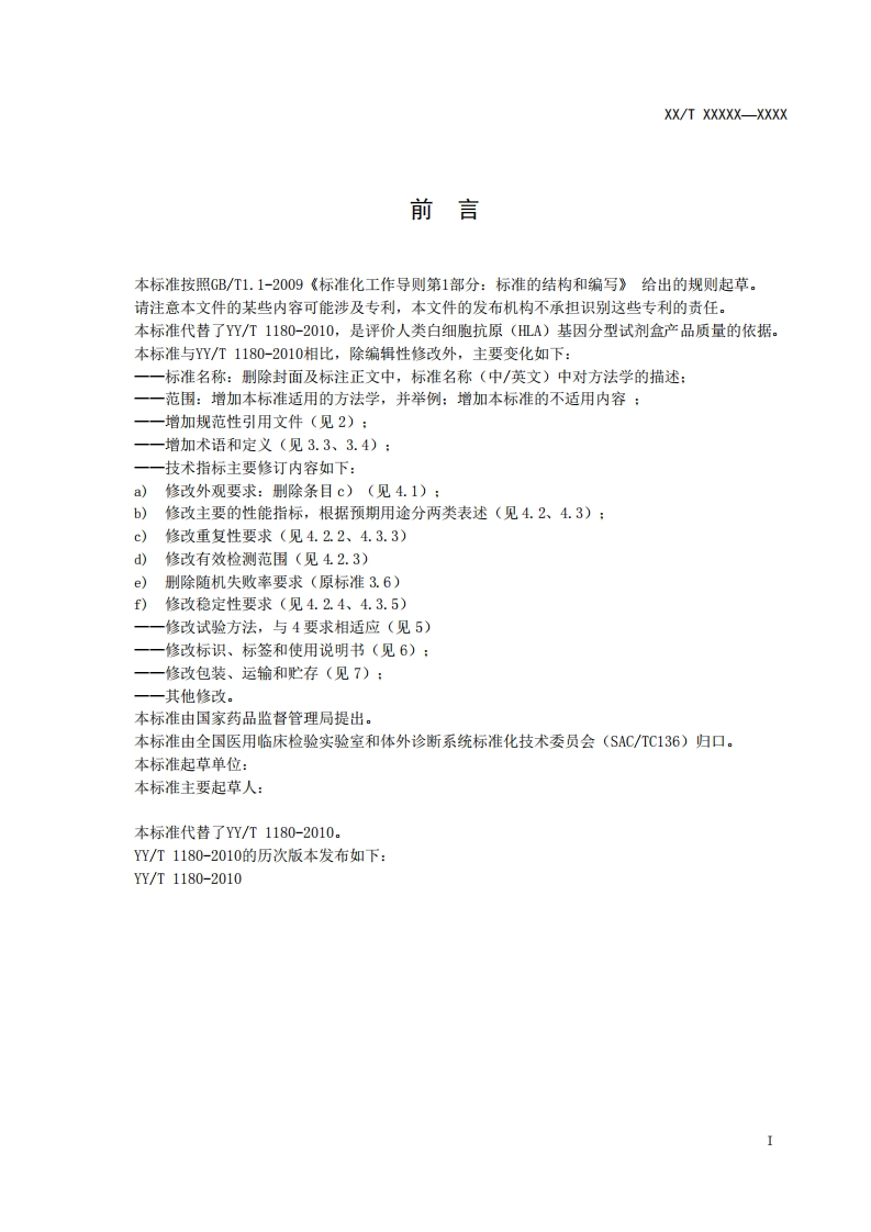 人类白细胞抗原(HLA)基因分型试剂盒TypingKitforHumanLeucocyteAntigen(HLA)征求意见稿)348072@abc15小时前发布关注私信0.25MB8页044人类白细胞抗原(HLA)基因分型试剂盒TypingKitforHumanLeucocyteAntigen(HLA)征求意见稿)此内容为付费资源,请付费后查看¥19¥23黄金会员免费钻石会员免费立即购买您当前未登录!建议登陆后购买,可保存购买订单付费资源 第1页 / 共8页 第2页 / 共8页 第3页 / 共8页 第4页 / 共8页 第5页 / 共8页 试读已结束,还剩3页,您可下载完整版后进行离线阅读 THE END标准规范 文本预览 ICS11.100C44中华人民共和国医药行业标准YY/T1180-XXXX代替YY/T1180-2010人类白细胞抗原(HLA)基因分型试剂盒Typing Kit for Human Leucocyte Antigen (HLA)(征求意见稿)XXXX-XX-XX发布XXXX-XX-XX实施国家药品监督管理局发布 查看更多 收起部分 喜欢就支持一下吧收藏