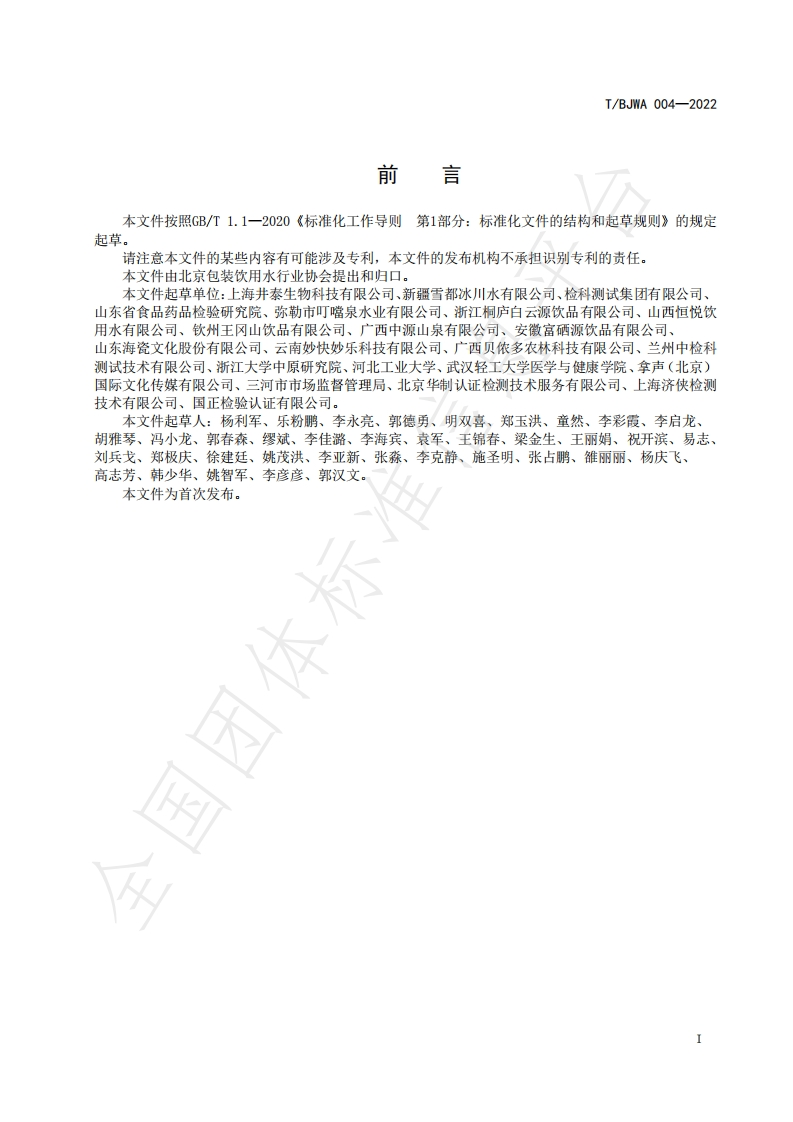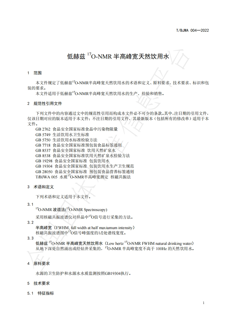 低赫兹_O-NMR半高峰宽天然饮用水LowHertz1O-NMRFWHMNaturalDrinkingWater348072@abc昨天发布关注私信0.43MB7页022低赫兹_O-NMR半高峰宽天然饮用水LowHertz1O-NMRFWHMNaturalDrinkingWater此内容为付费资源,请付费后查看¥19¥23黄金会员免费钻石会员免费立即购买您当前未登录!建议登陆后购买,可保存购买订单付费资源 第1页 / 共7页 第2页 / 共7页 第3页 / 共7页 第4页 / 共7页 第5页 / 共7页 试读已结束,还剩2页,您可下载完整版后进行离线阅读 THE END标准规范 文本预览 ICS67.160.20CCS X50BJWA团体标准T/BJWA004-2022低赫兹17O-NMR半高峰宽天然饮用水Low Hertz O-NMR FWHM Natural Drinking Water国团体标2022-10-18发布2022-11-18实施北京包装饮用水行业协会发布 查看更多 收起部分 喜欢就支持一下吧收藏