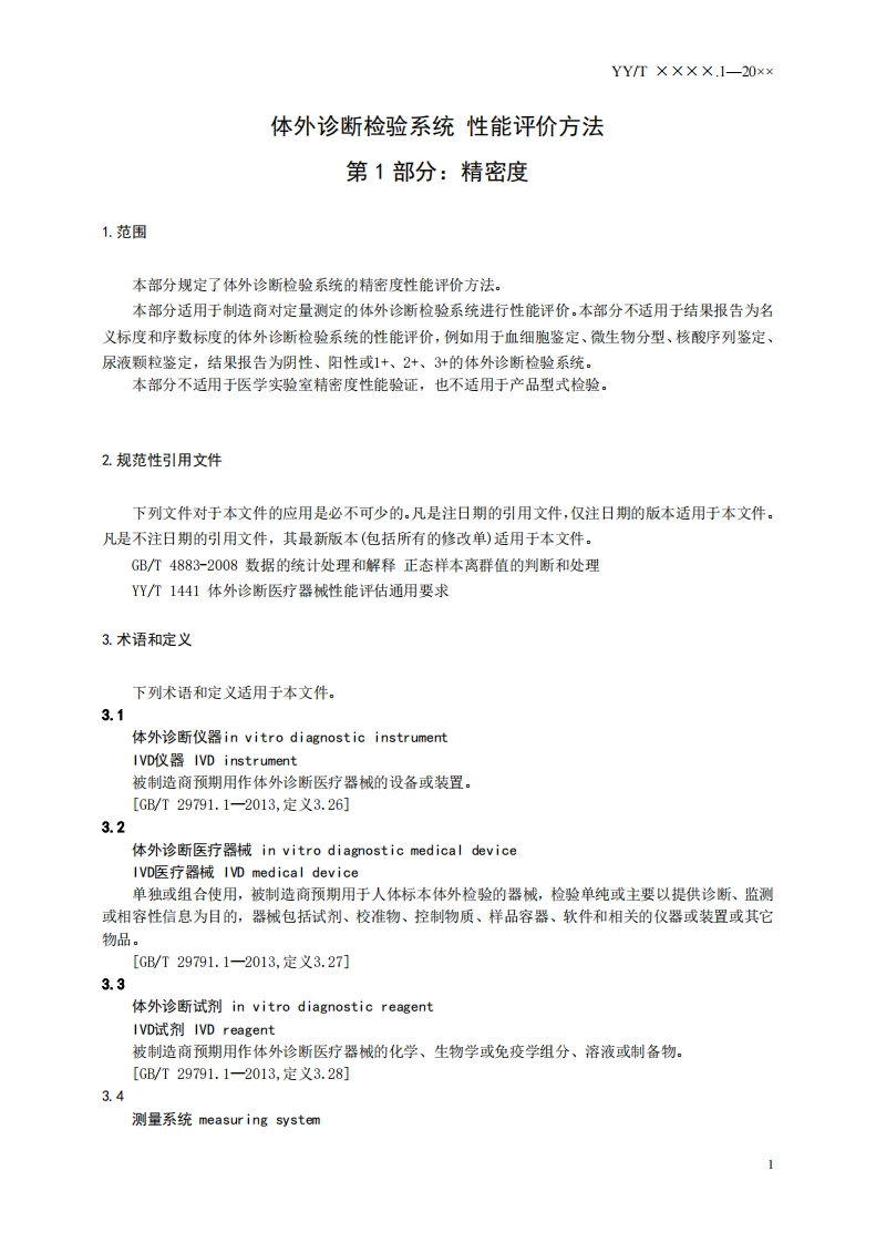 体外诊断检验系统性能评价方法第1部分_精密度InvitrodiagnostictestsystemsPerformanceevaluationmethodPart1_Precision(征求意见稿)348072@abc昨天发布关注私信0.99MB27页044体外诊断检验系统性能评价方法第1部分_精密度InvitrodiagnostictestsystemsPerformanceevaluationmethodPart1_Precision(征求意见稿)此内容为付费资源,请付费后查看¥19¥23黄金会员免费钻石会员免费立即购买您当前未登录!建议登陆后购买,可保存购买订单付费资源 第1页 / 共27页 第2页 / 共27页 第3页 / 共27页 第4页 / 共27页 第5页 / 共27页 试读已结束,还剩22页,您可下载完整版后进行离线阅读 THE END标准规范 文本预览 1Cs11.100030中华人民共和国医药行业标准YYT××××.1-20××体外诊断检验系统性能评价方法第1部分:精密度In vitro diagnostic test systems-Performance evaluation method-Part 1:Precision(征求意见稿)××X×-××-×X发布××××-××-X×实施国家药品监督管理局发布 查看更多 收起部分 喜欢就支持一下吧收藏