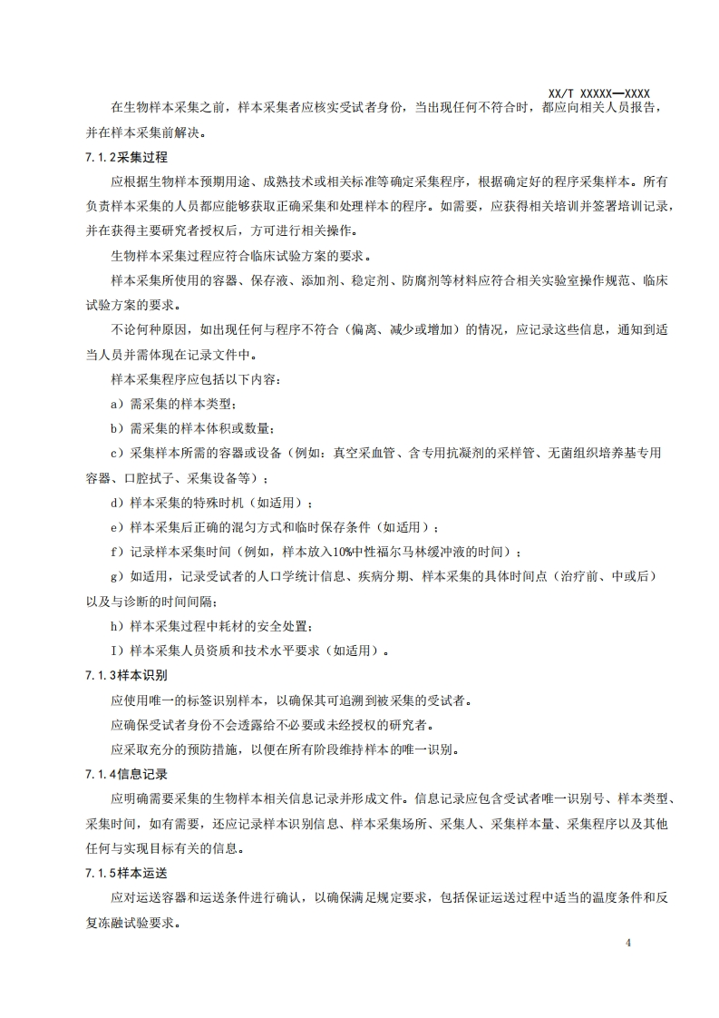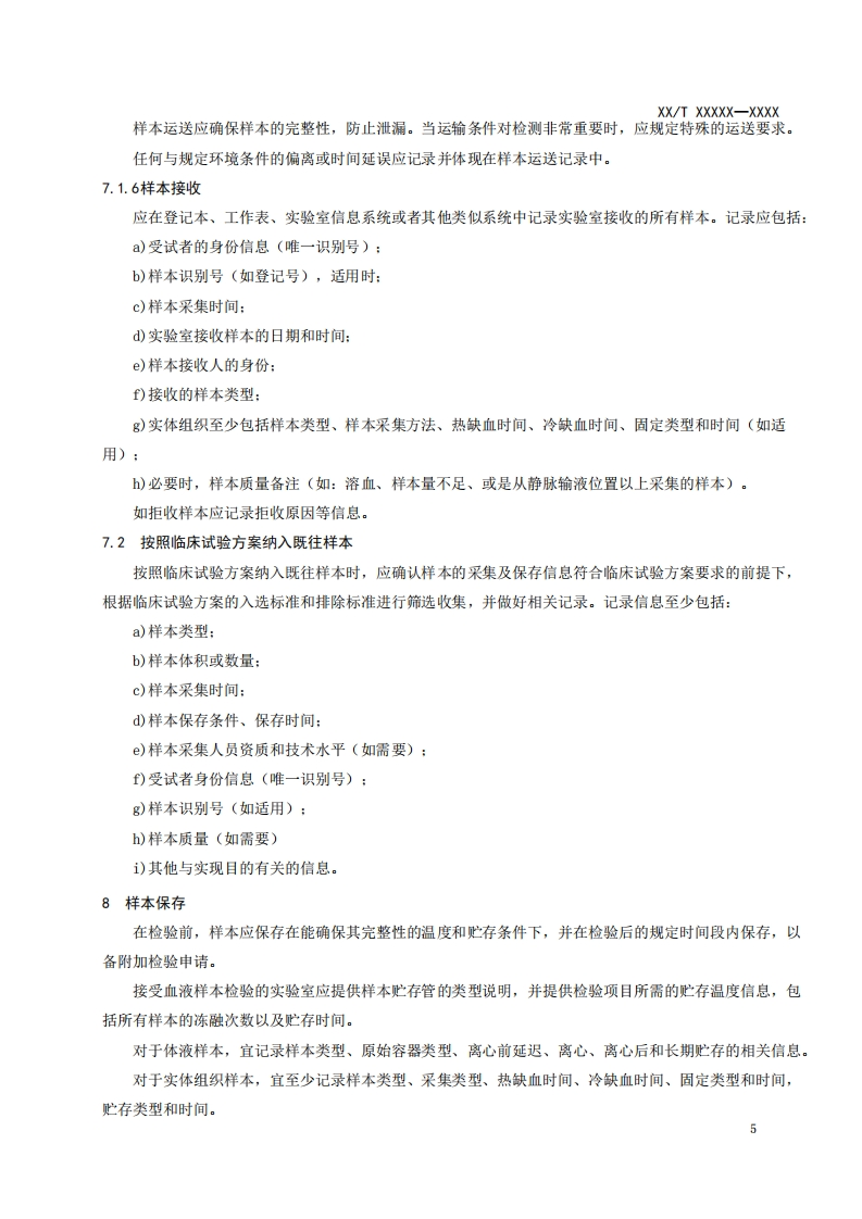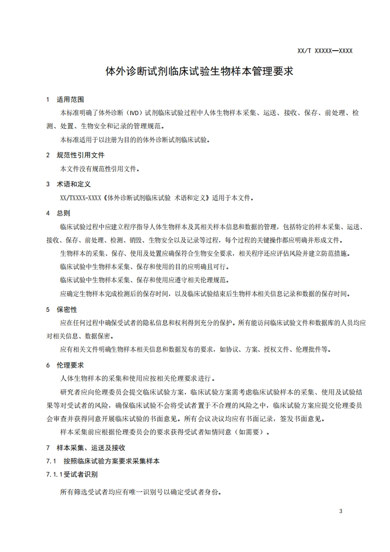 ICS点击此处添加1CS号CCS点击此处添加CCS号YY中华人民共和国医药行业标准XX/T XXXXX一XXXX代替X/T体外诊断试剂临床试验生物样本管理要求Management requirements for human biomaterials in IVD clinical study(点击此处添加与国际标准一致性程度的标识)(征求意见稿)(本草案完成时间:2024.8.7)在提交反馈意见时,请将您知道的相关专利连同支持性文件一并附上。XXXX-XX-XX发布XXXX-XX-XX实施国家药品监督管理局发布