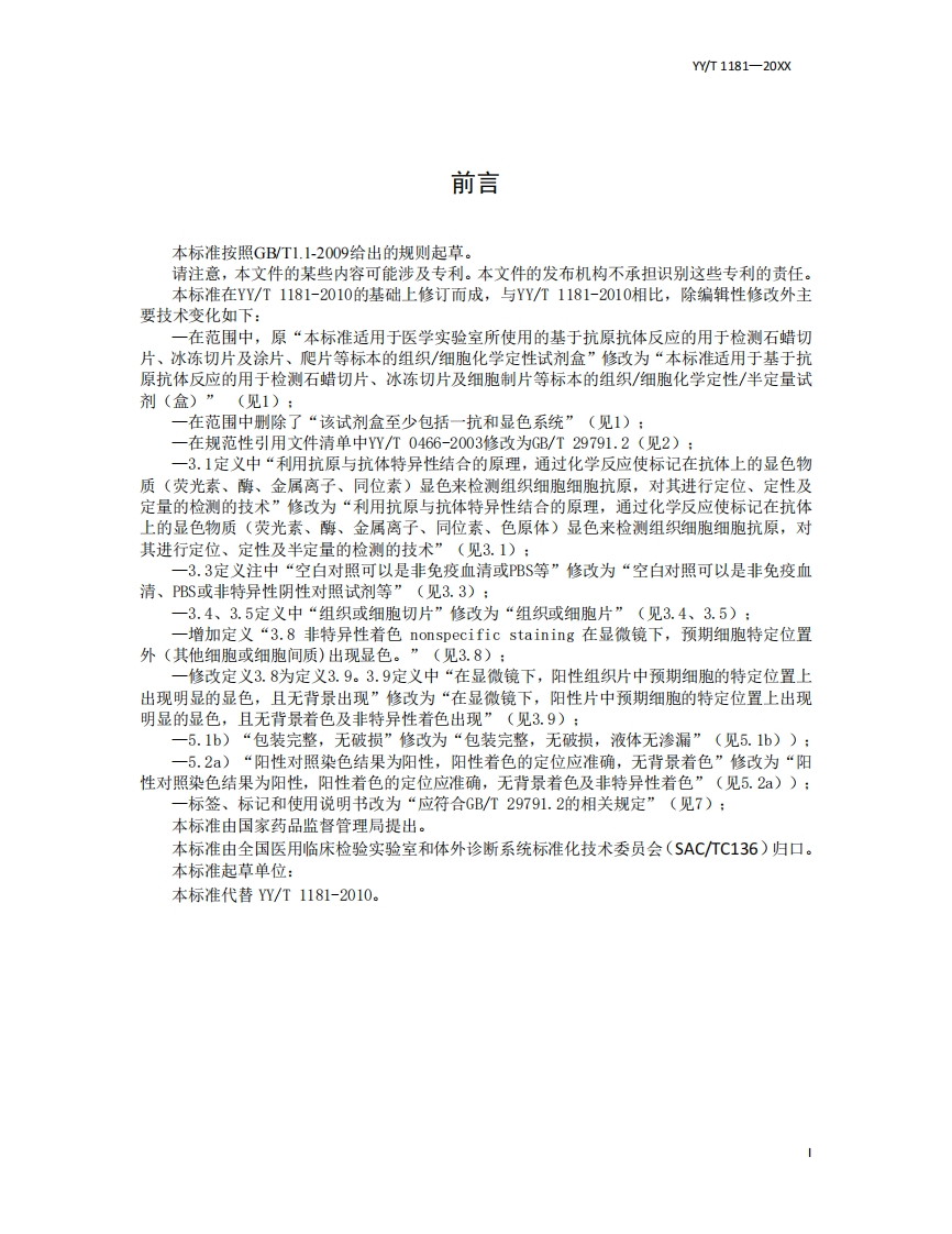 免疫组织化学试剂盒Immunohistochemistrykit(征求意见稿)348072@abc前天发布关注私信0.26MB8页040免疫组织化学试剂盒Immunohistochemistrykit(征求意见稿)此内容为付费资源,请付费后查看¥19¥23黄金会员免费钻石会员免费立即购买您当前未登录!建议登陆后购买,可保存购买订单付费资源 第1页 / 共8页 第2页 / 共8页 第3页 / 共8页 第4页 / 共8页 第5页 / 共8页 试读已结束,还剩3页,您可下载完整版后进行离线阅读 THE END标准规范 文本预览 1CS11.100C44YY中华人民共和国医药行业标准YW/T1181-20Xx代替W斤1181-2010免疫组织化学试剂盒Immunohistochemistry kit(征求意见稿)20××-××-××发布20××-××-××实施国家药品监督管理局发布 查看更多 收起部分 喜欢就支持一下吧收藏