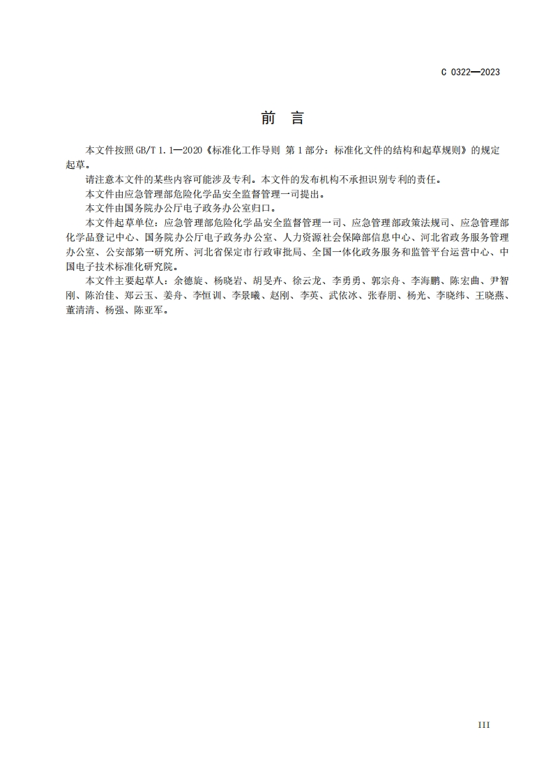 全国一体化政务服务平台电子证照危险化学品安全使用许可证348072@abc前天发布关注私信0.55MB20页040全国一体化政务服务平台电子证照危险化学品安全使用许可证此内容为付费资源,请付费后查看¥19¥23黄金会员免费钻石会员免费立即购买您当前未登录!建议登陆后购买,可保存购买订单付费资源 第1页 / 共20页 第2页 / 共20页 第3页 / 共20页 第4页 / 共20页 第5页 / 共20页 试读已结束,还剩15页,您可下载完整版后进行离线阅读 THE END标准规范 文本预览 1Cs35.240.99CCS L 67ZWEW全国一体化政务服务平台标准C0322-2023全国一体化政务服务平台电子证照危险化学品安全使用许可证2023-06-30发布2023-06-30实施国务院办公厅电子政务办公室发布应急管理部危险化学品安全监督管理一司 查看更多 收起部分 喜欢就支持一下吧收藏